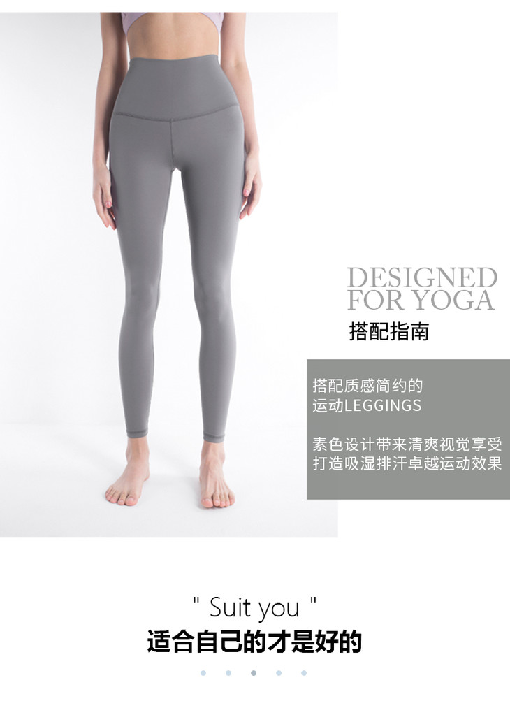 LEANA丽娜高腰亲肤裸感纯色速干弹力紧身提臀运动瑜伽长裤NP3806-1(升级面料,批次不同,会有色差)