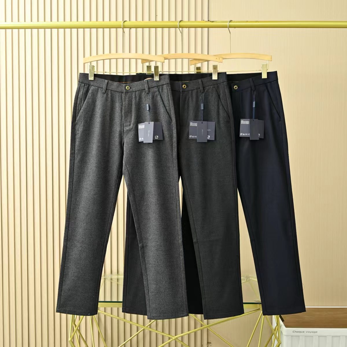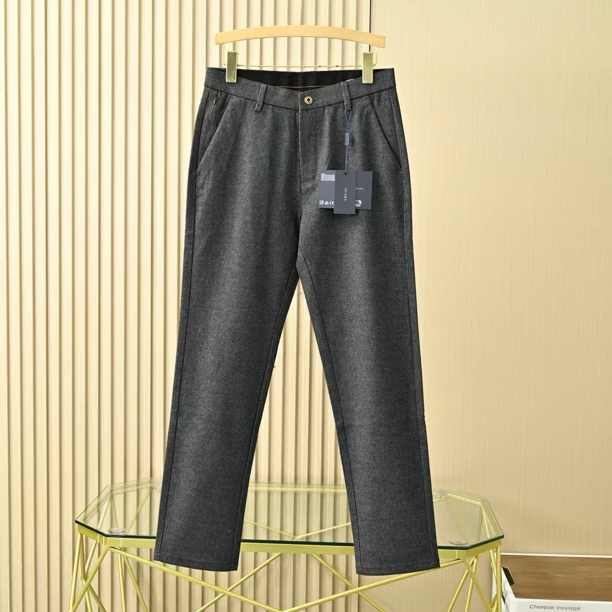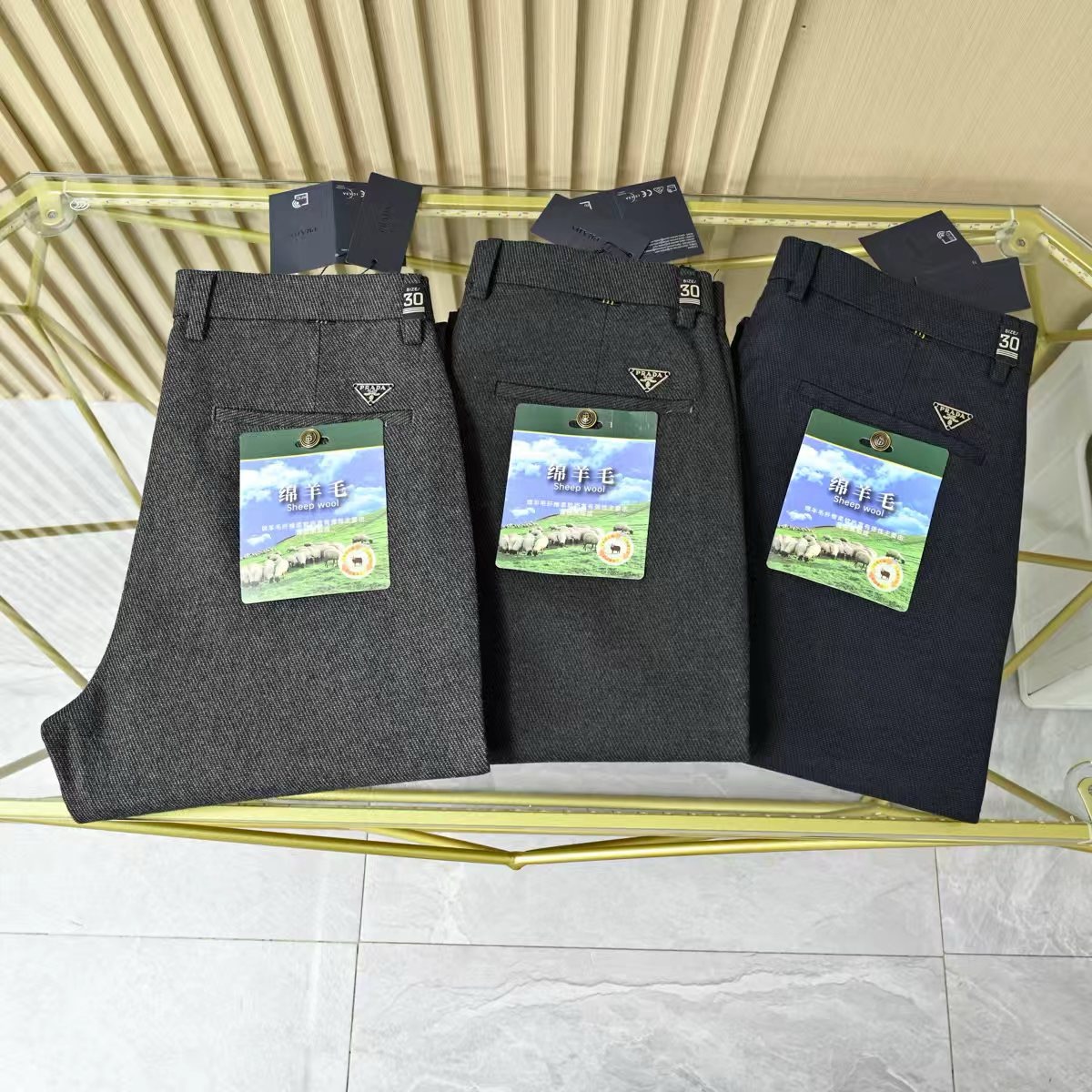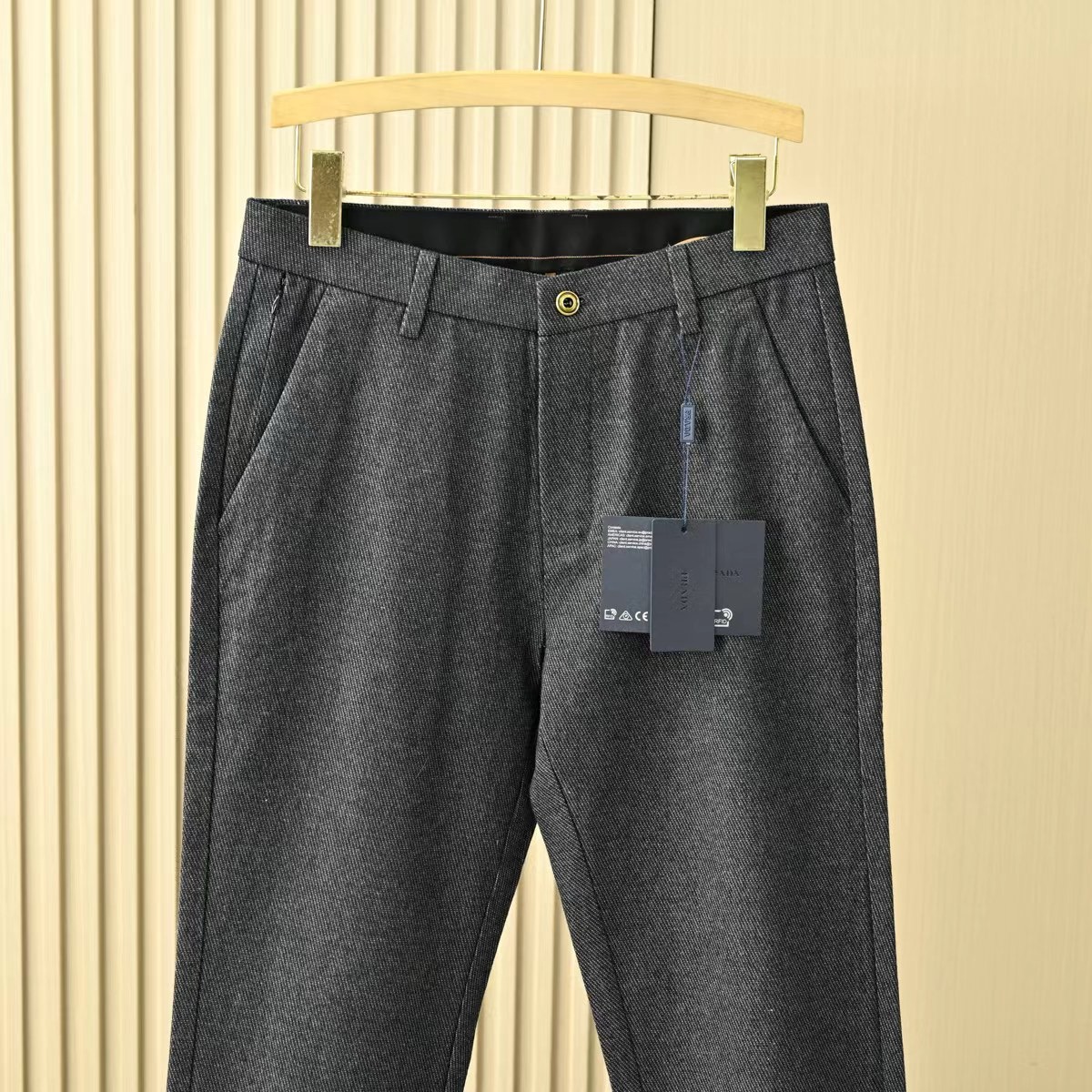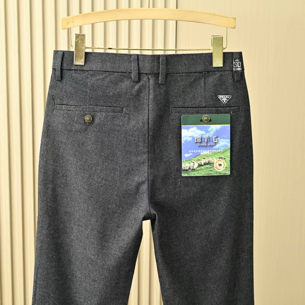 普拉达2026春秋季新品男士羊毛加厚YKK拉链商务休闲西裤