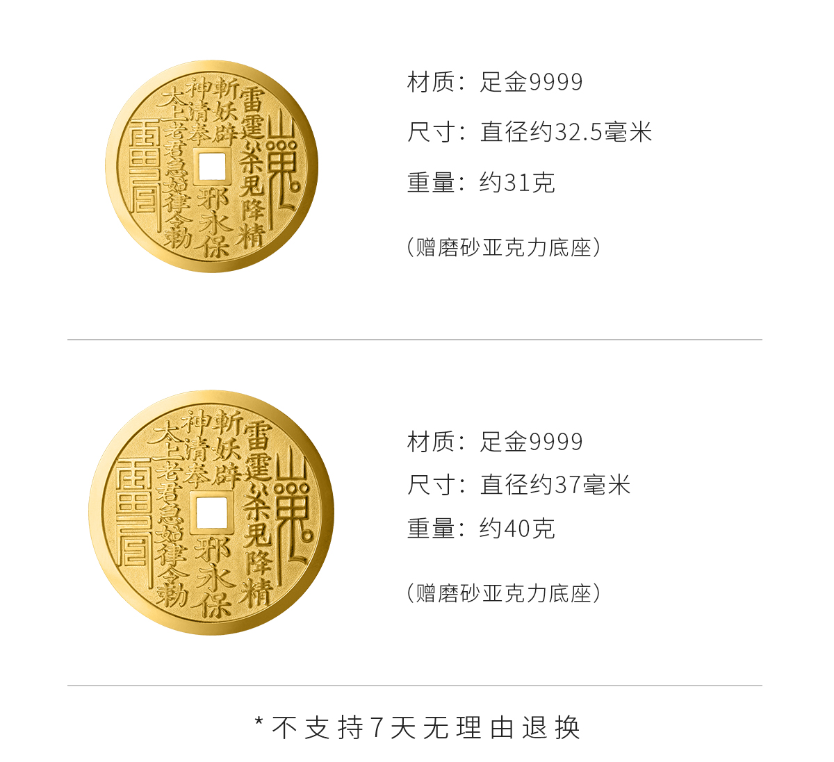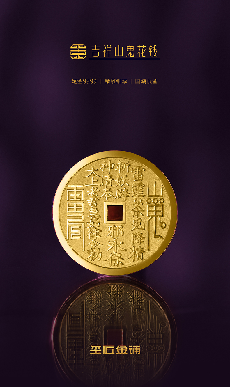 玺匠金铺《吉祥山鬼花钱》足金9999黄金吊坠 吉祥饰品挂件
