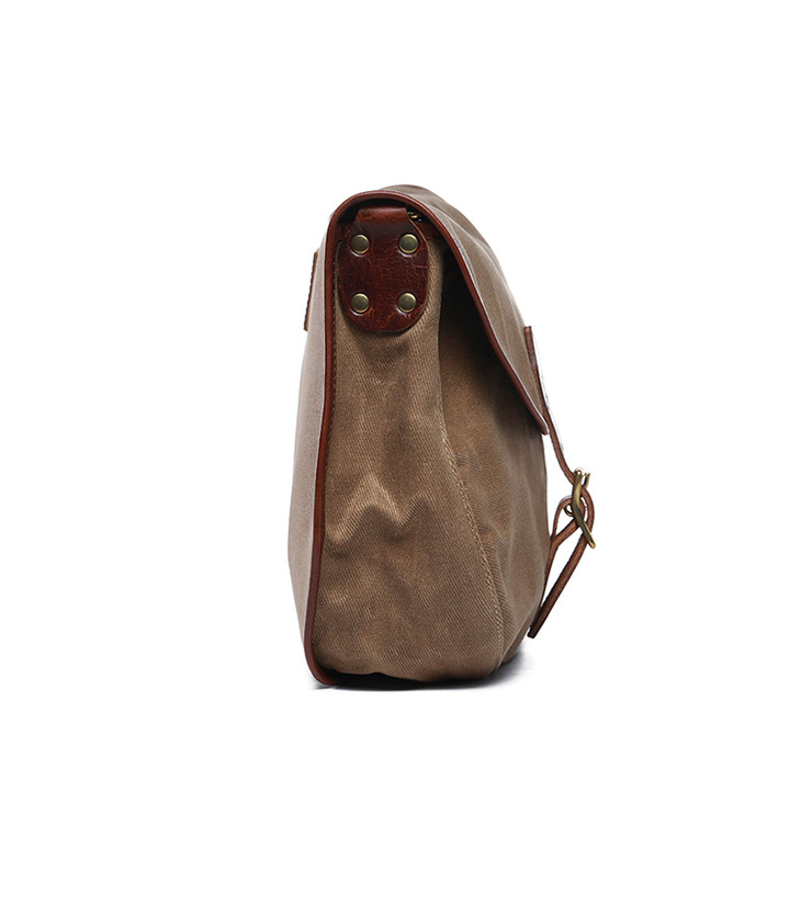 BROODX CICADA复古意大利牛皮防水油蜡帆布包 黄配咖 三色可选
