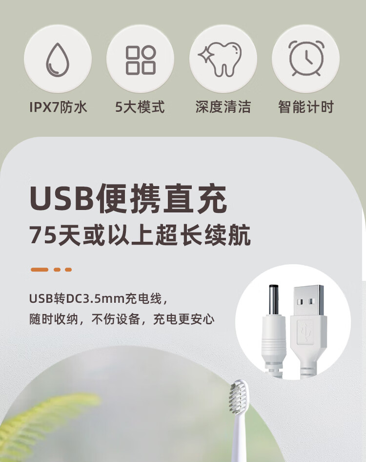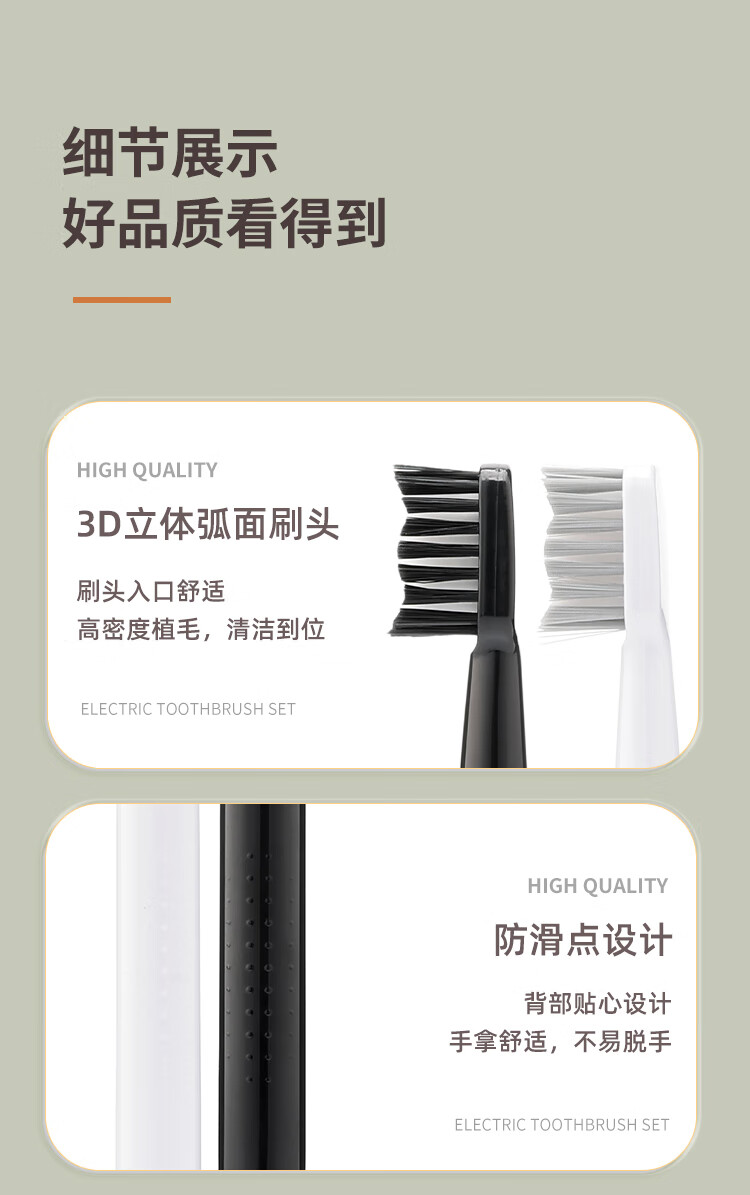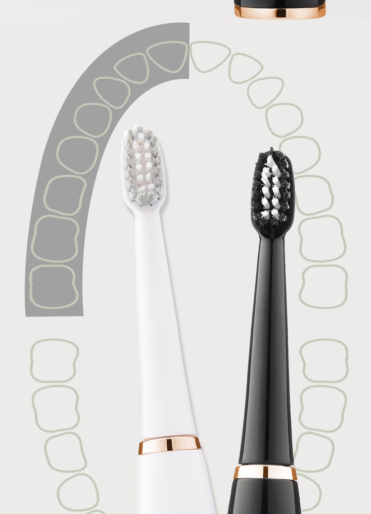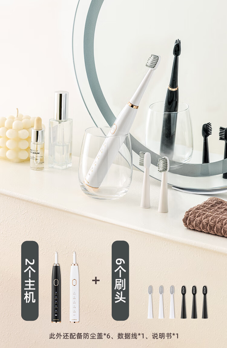 装箱清单:主机*2、刷头*6、防尘盖*6、数据线*1、说明书*1