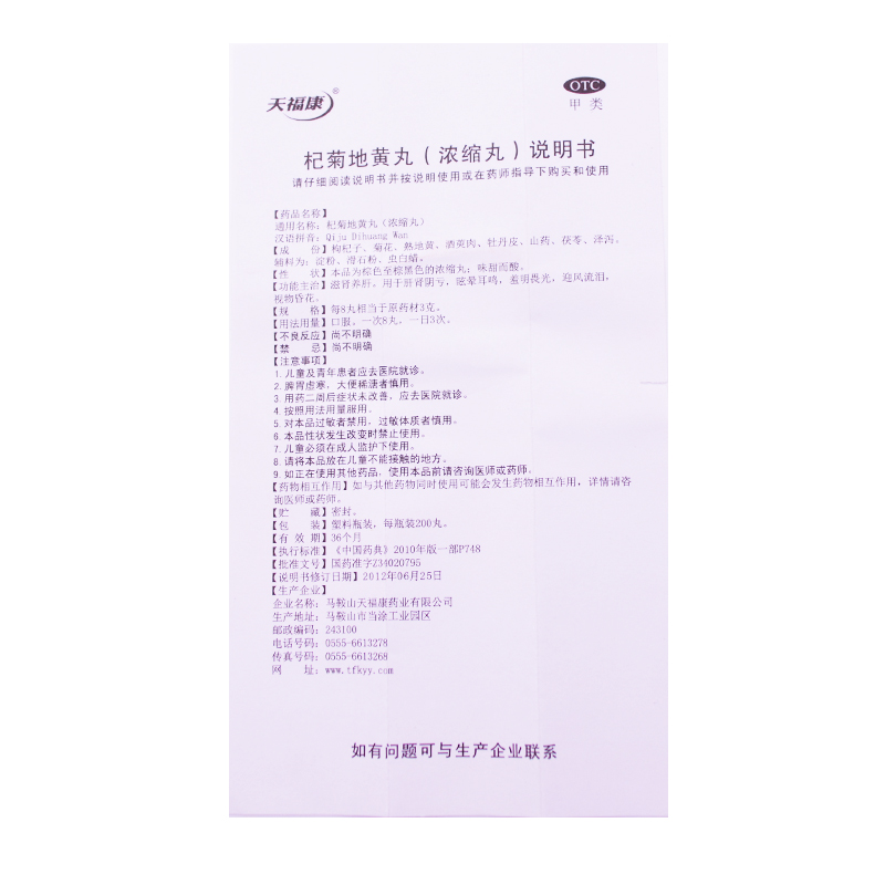 天福康 杞菊地黄丸 200丸 滋肾养肝眩晕耳鸣肝肾阴亏