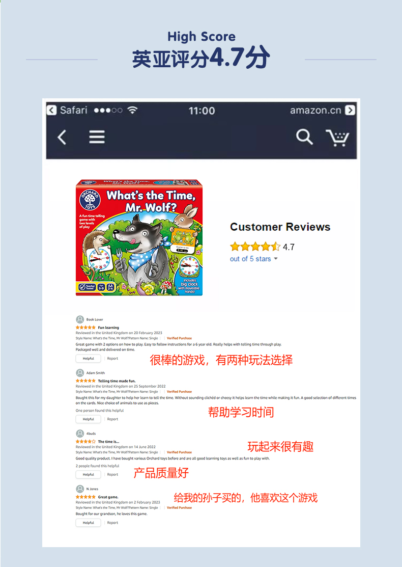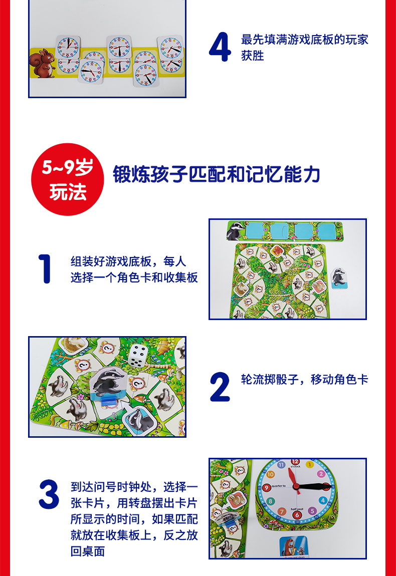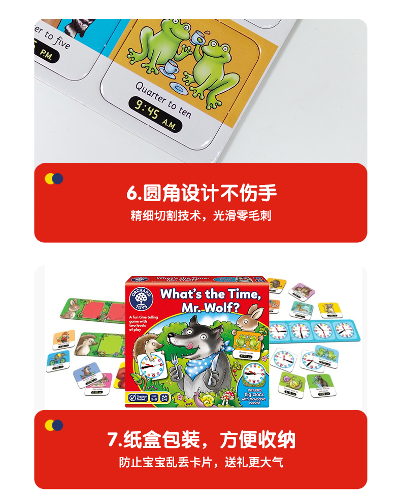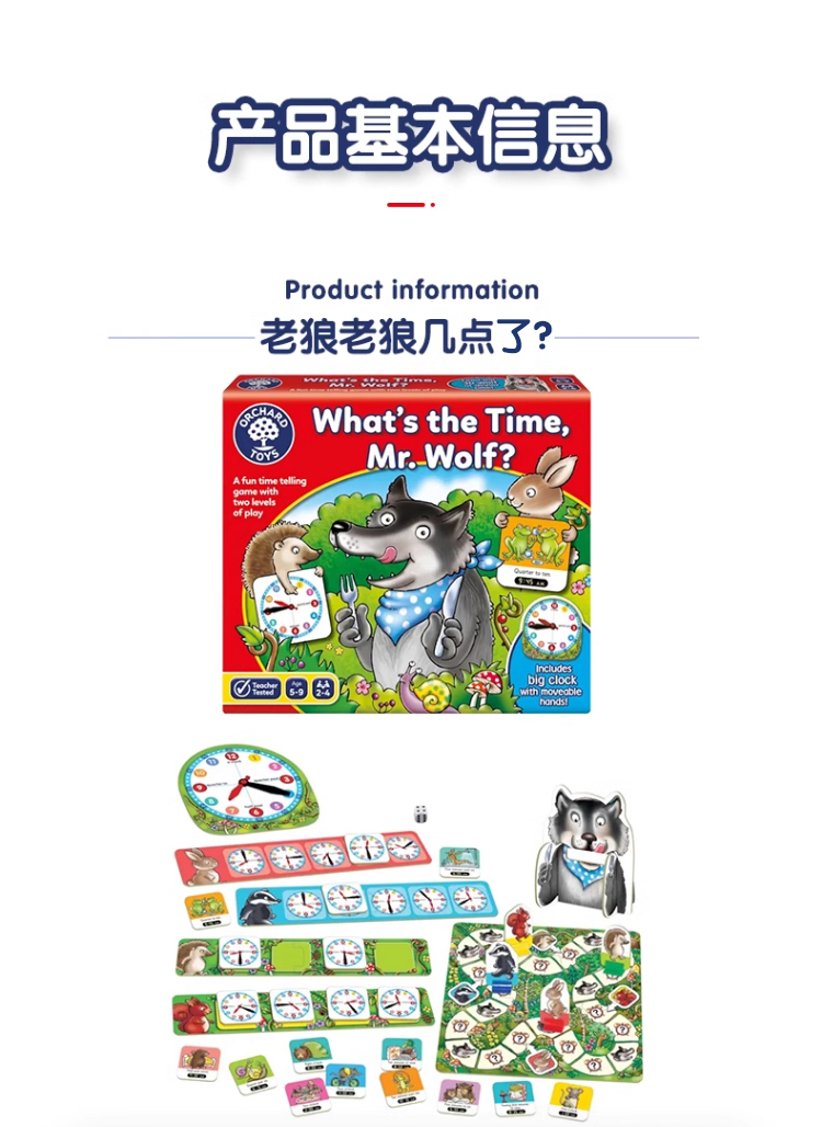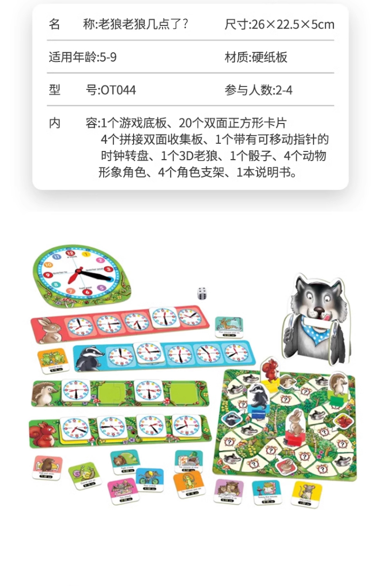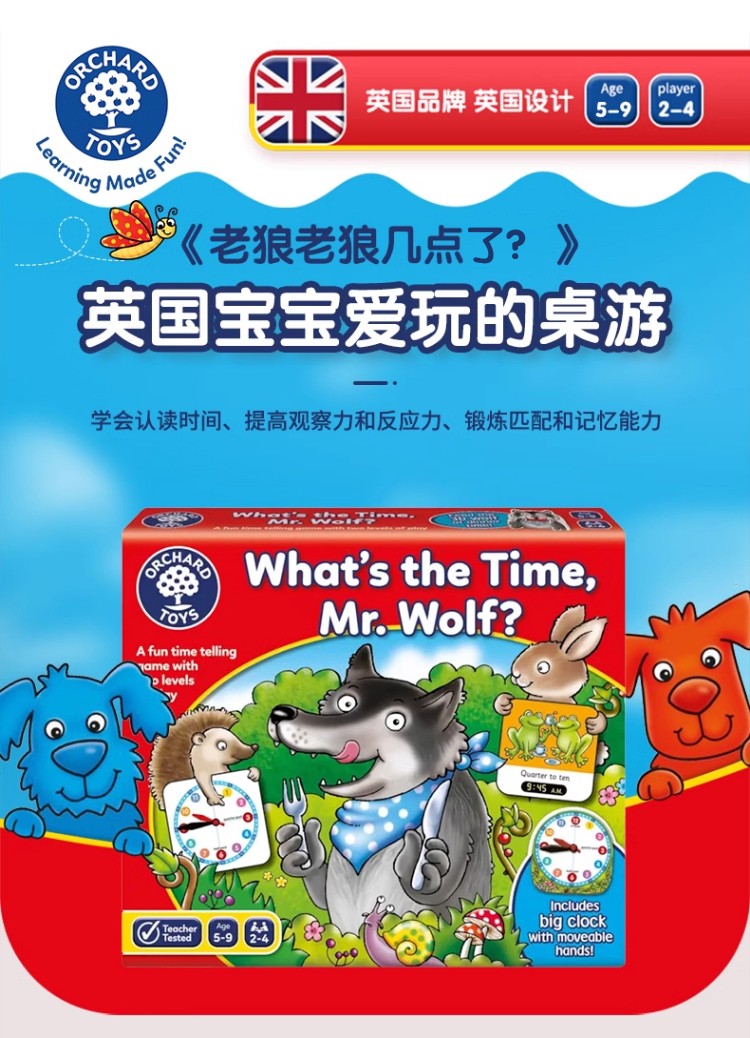 快慢狐Orchard Toys老狼老狼几点了 训练儿童认识时间桌游益智玩具5-9岁