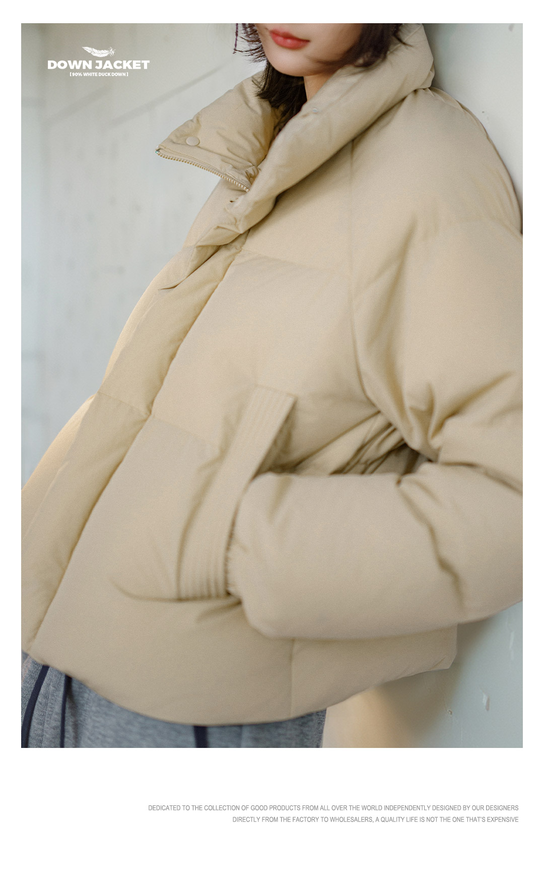 马登90白鸭绒羽绒服立领廓形小个子加厚保暖面包服外套短款冬季女
