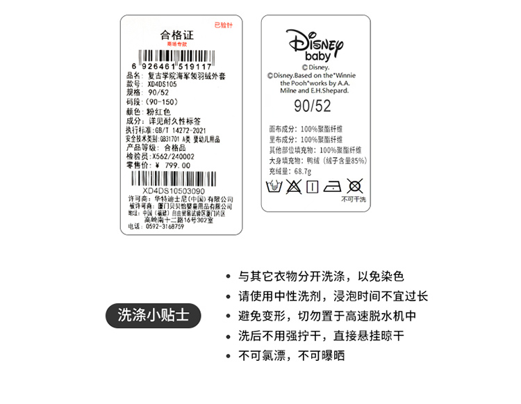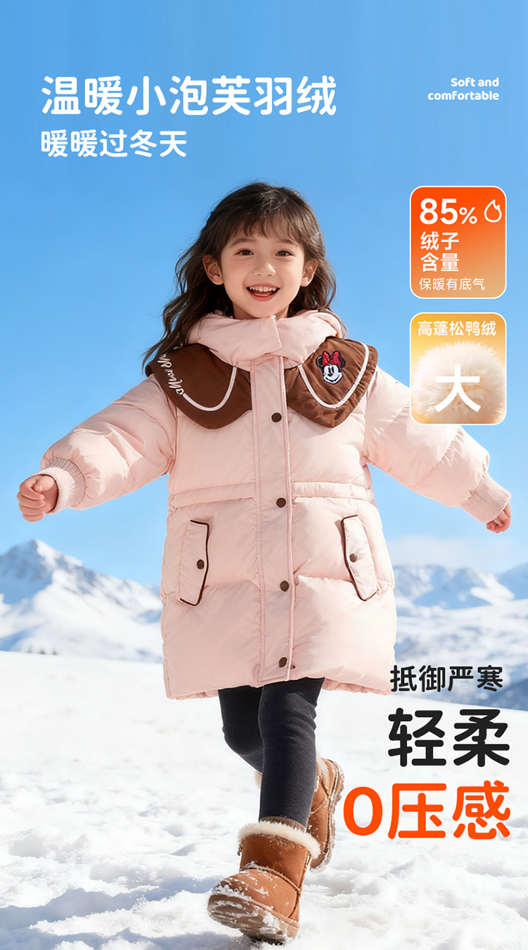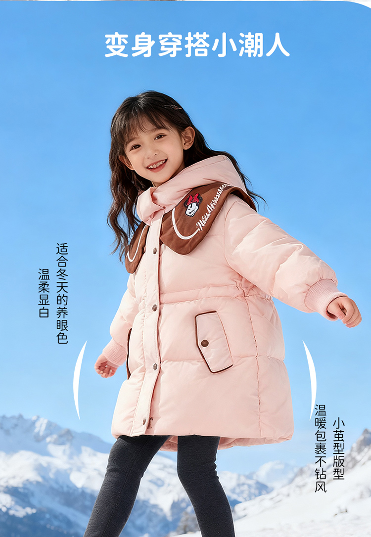 迪士尼女童冬款中长款羽绒服XD4DS105