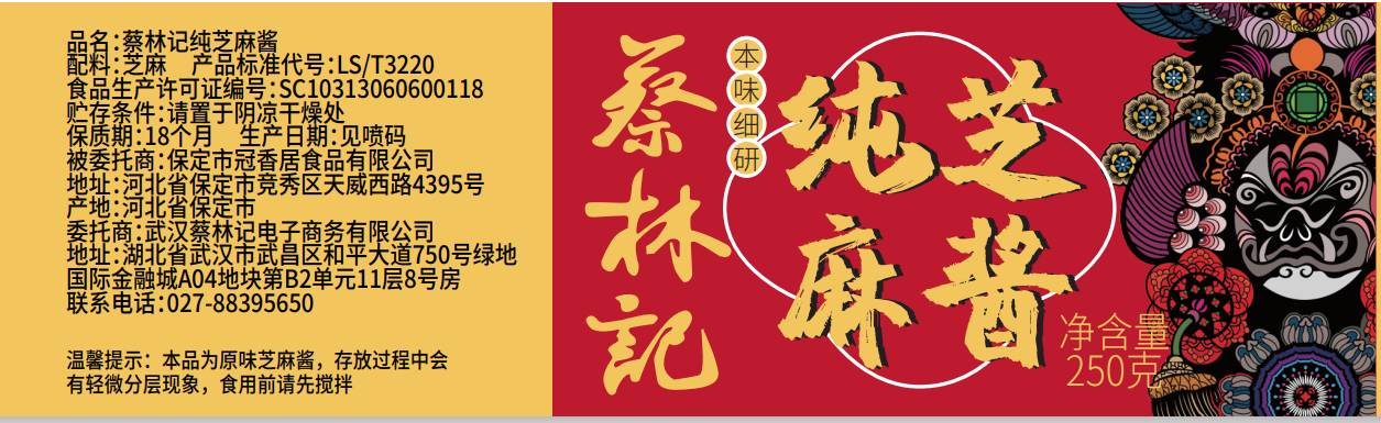 蔡林记白芝麻酱250g×2瓶石磨研磨纯芝麻酱调料酱 湖北直发