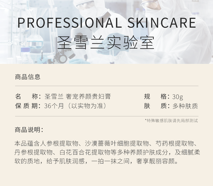 【自营】圣雪兰 小金管贵妇膏 养肤+修饰瑕疵 妆养美人女神常备 抗皱紧致