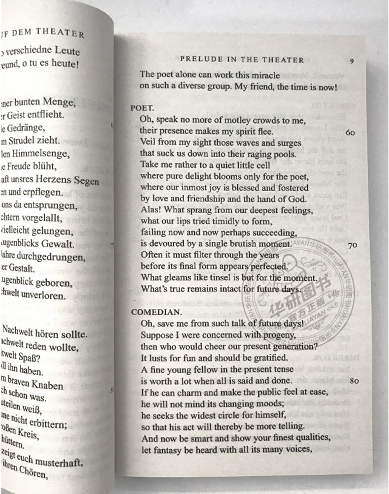 4.版本权威,由Peter Salm翻译并注释,对开两页的版面与德语原版一致,文字可读性极强,保留原作的韵律感及完整性。