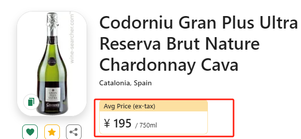 推荐歌萄源优佳珍藏霞多丽卡瓦起泡酒(Codorniu ' Gran Plus Ultra 'Chardonnay Brut Nature Reserva),亮点如下: