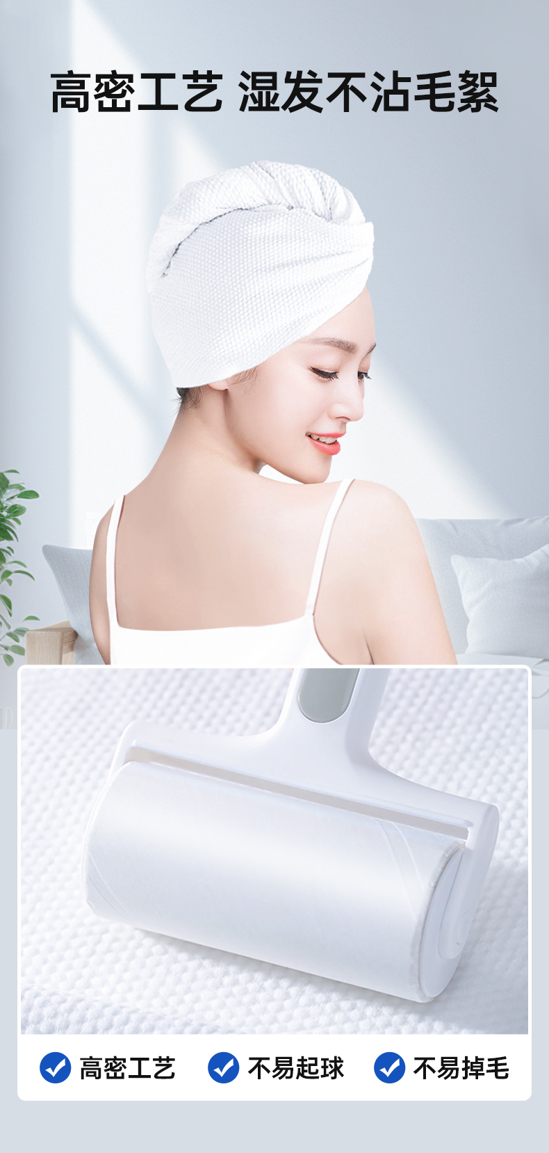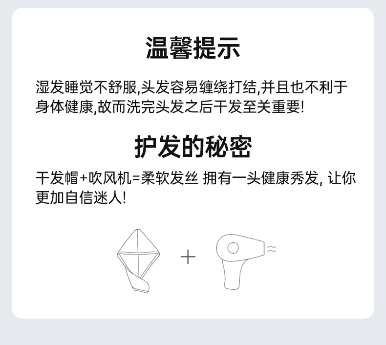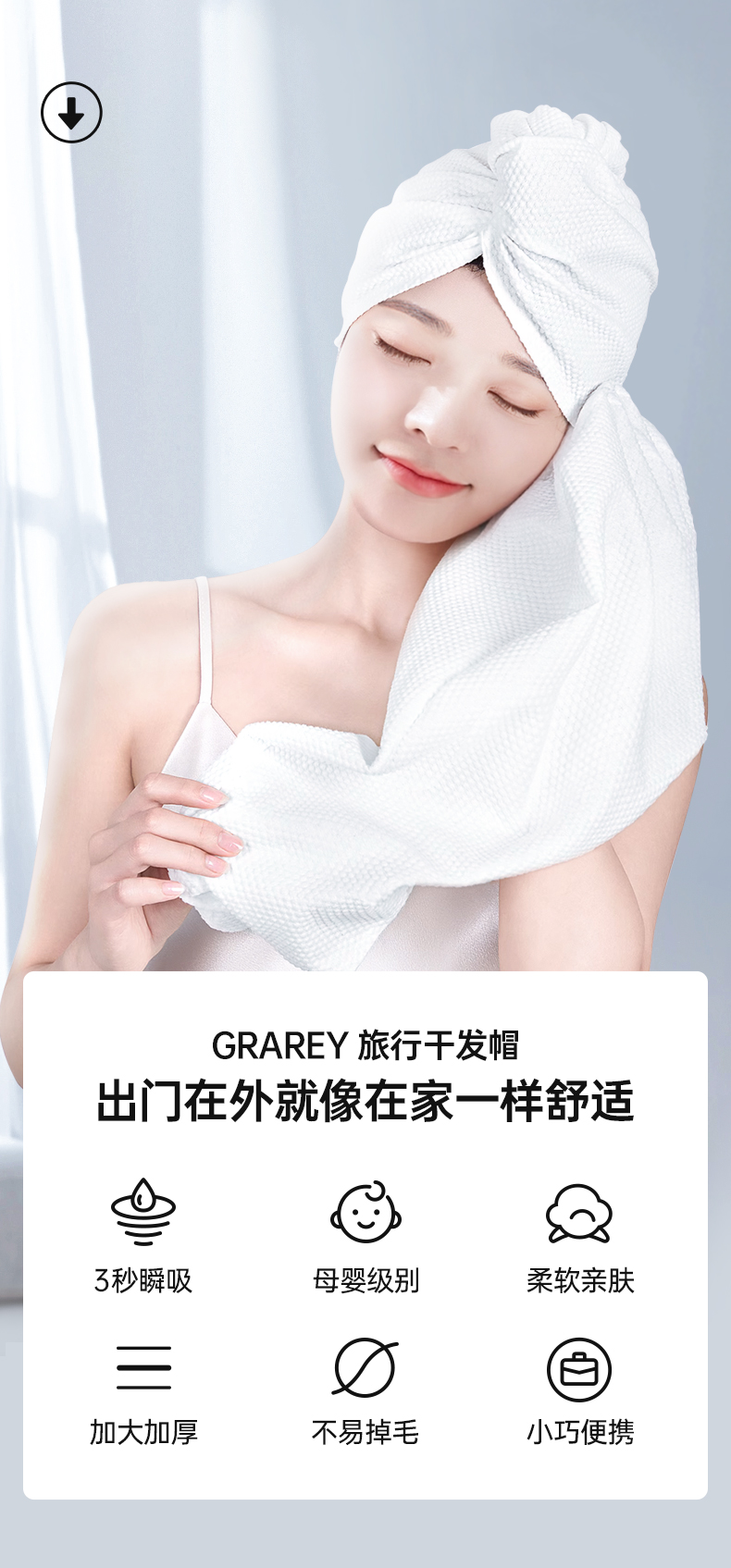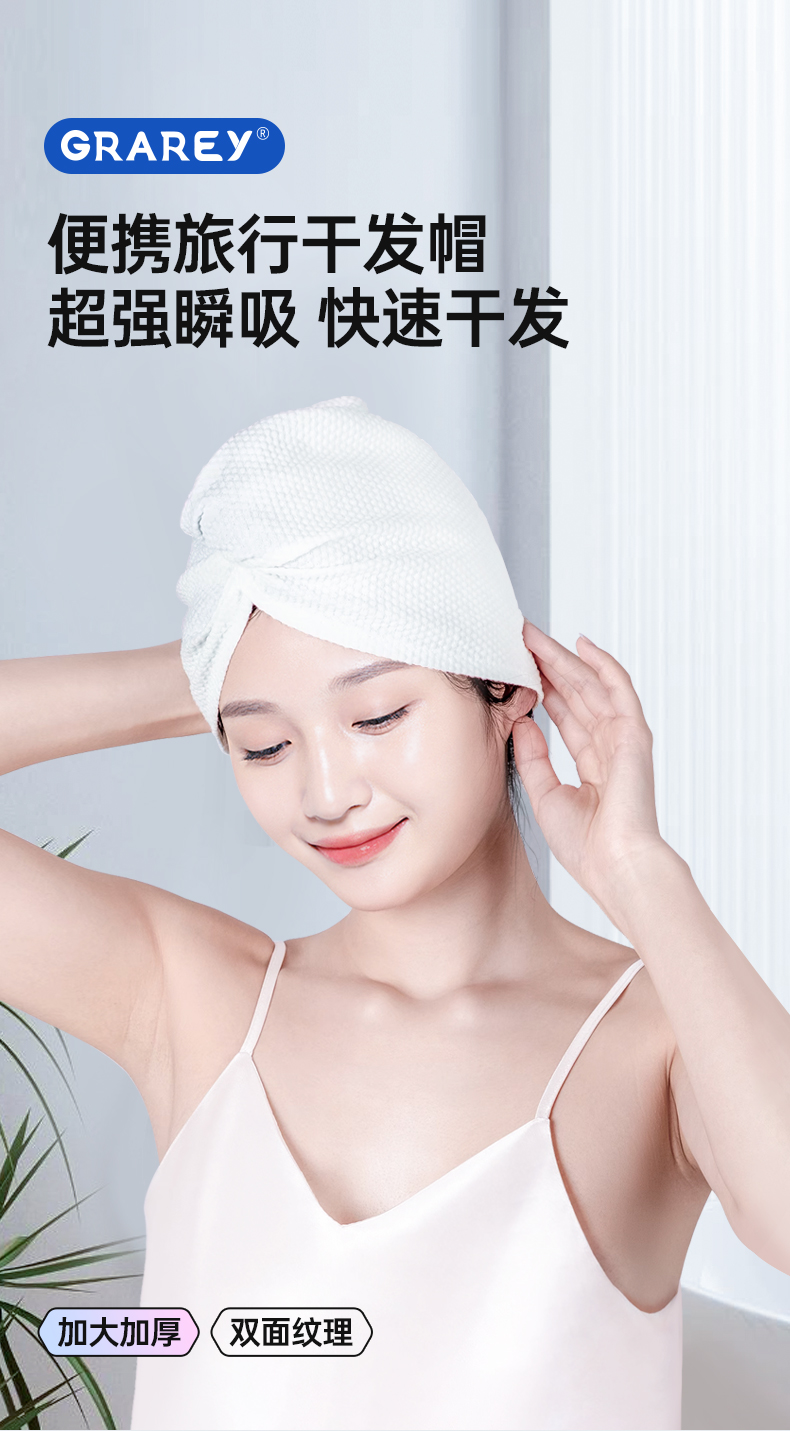 【双倍吸水,柔软舒适,呵护秀发】GRAREY(格瑞亚)旅行干发帽 (1条)/包