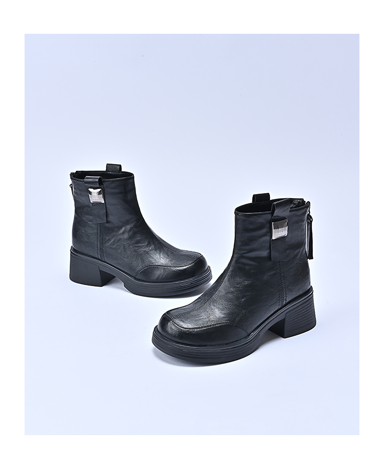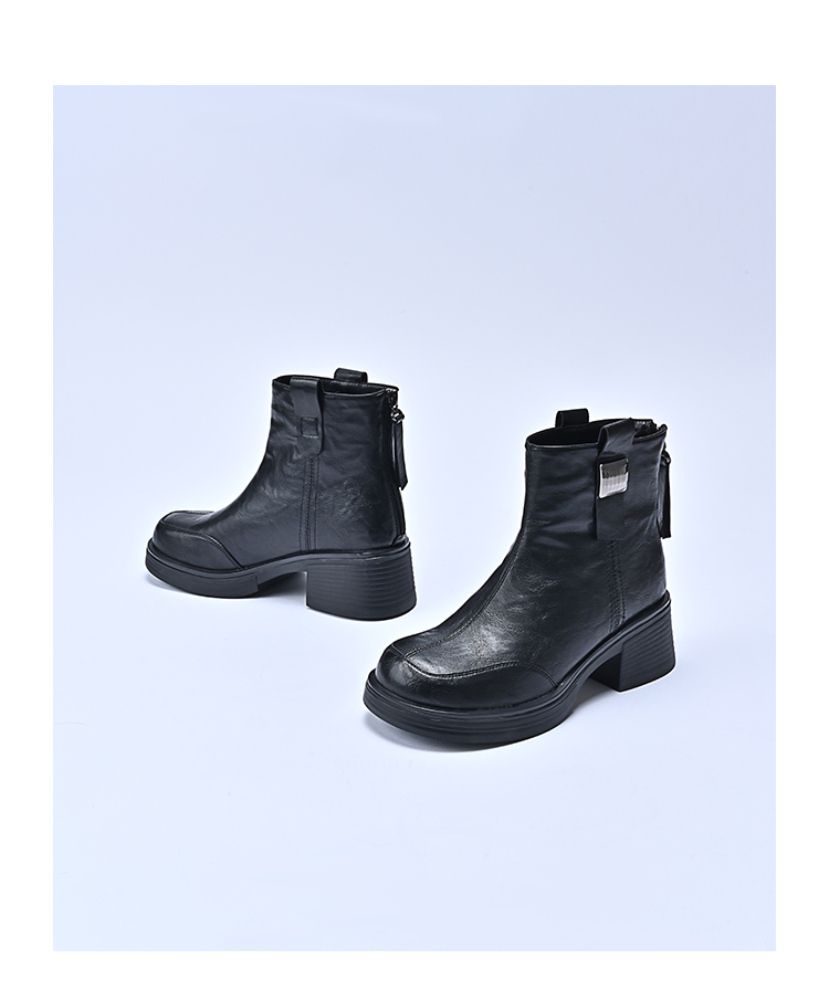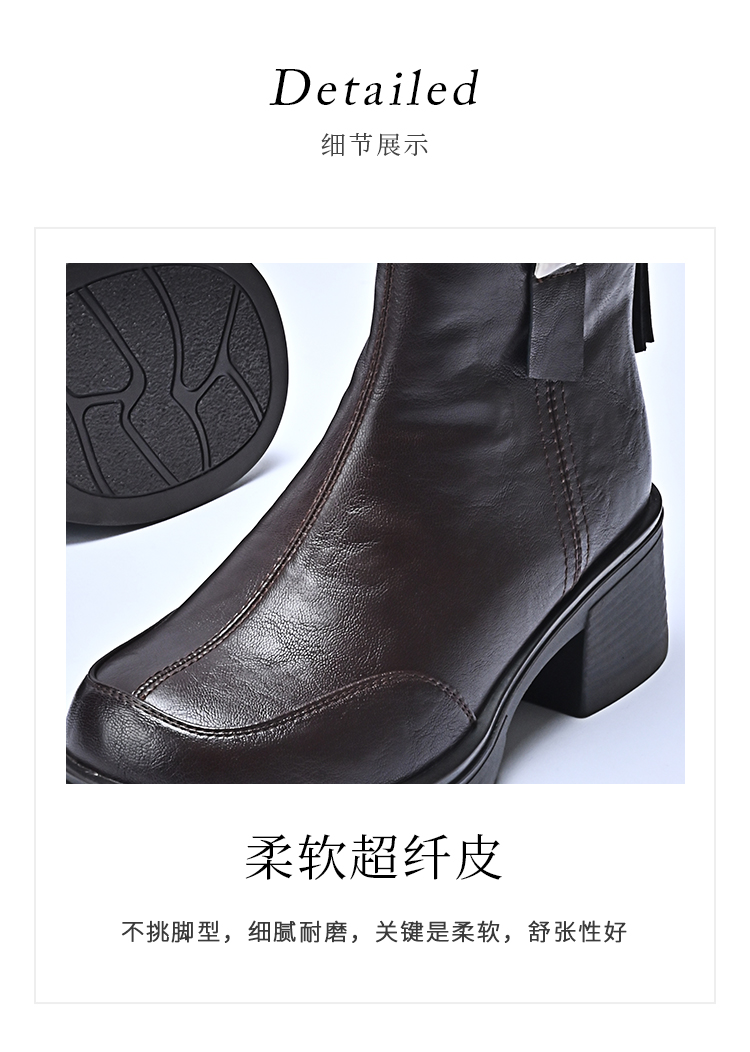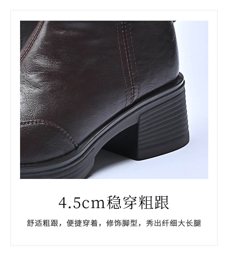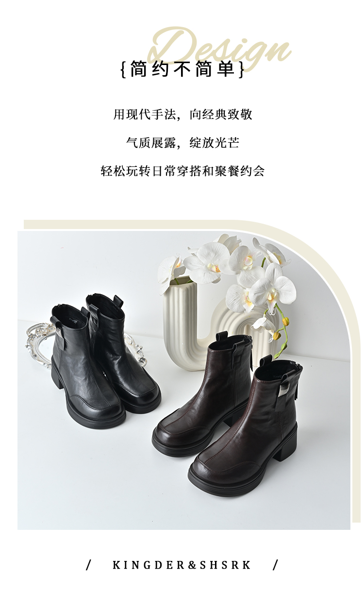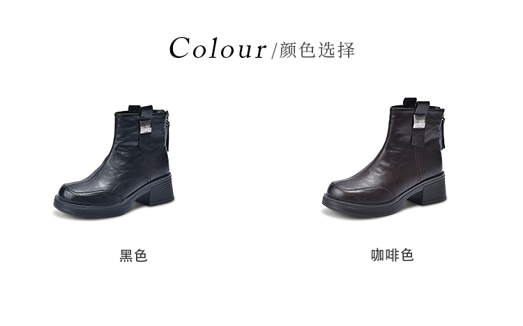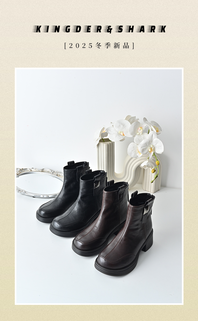 经典鲨2025冬季专柜新品百搭圆头加绒加厚中粗跟通勤短靴女KW331-558011