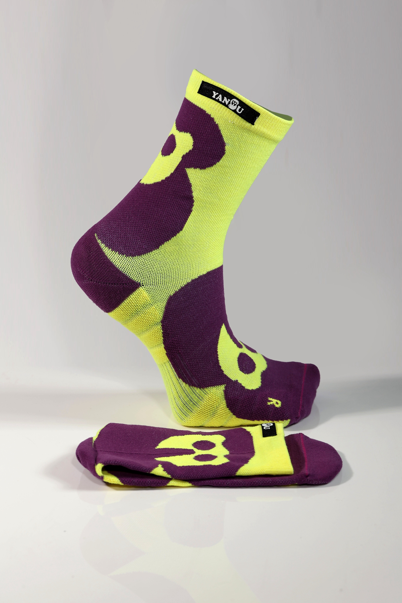 [尝鲜价!一双7折!]严素耐力+运动袜中筒速干快干跑步袜荧光配色路跑马拉松