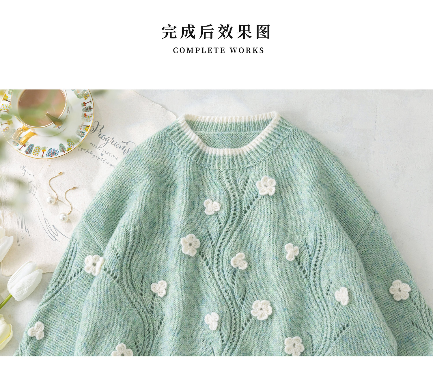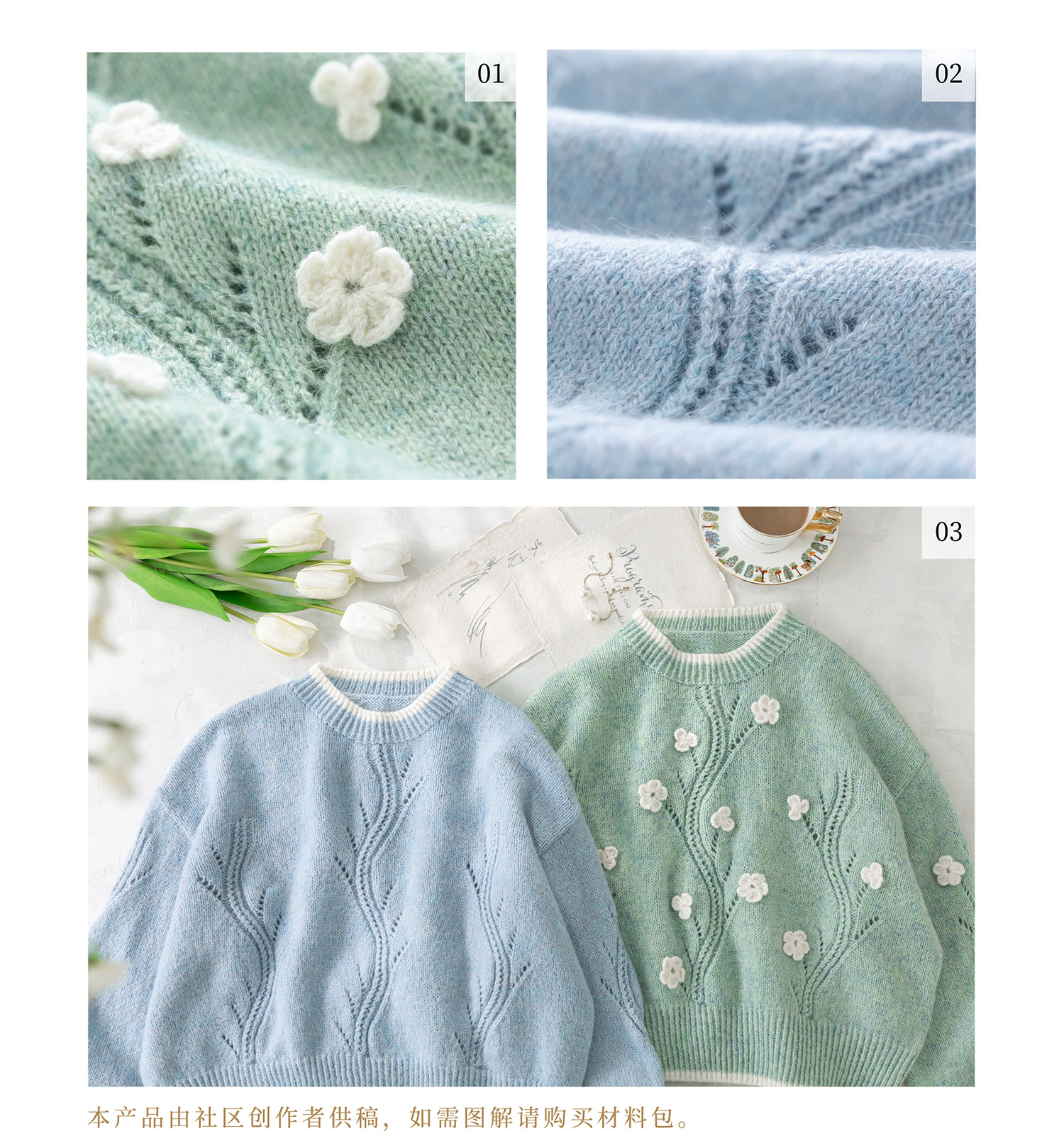 苏苏姐家艾米花朵套头衫手工DIY衣服棒针钩针毛线团材料包