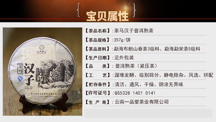 【老牌爆款】茶马世家得逸熟普洱熟茶357g