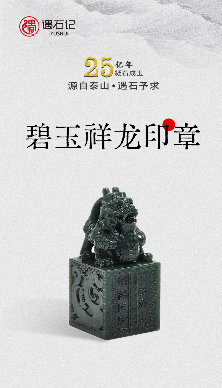 遇石记泰山玉3公分泰山碧玉祥龙印章礼盒