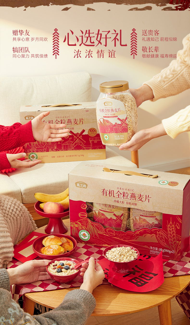 【商城专属】燕之坊有机全粒燕麦片礼盒1.8kg