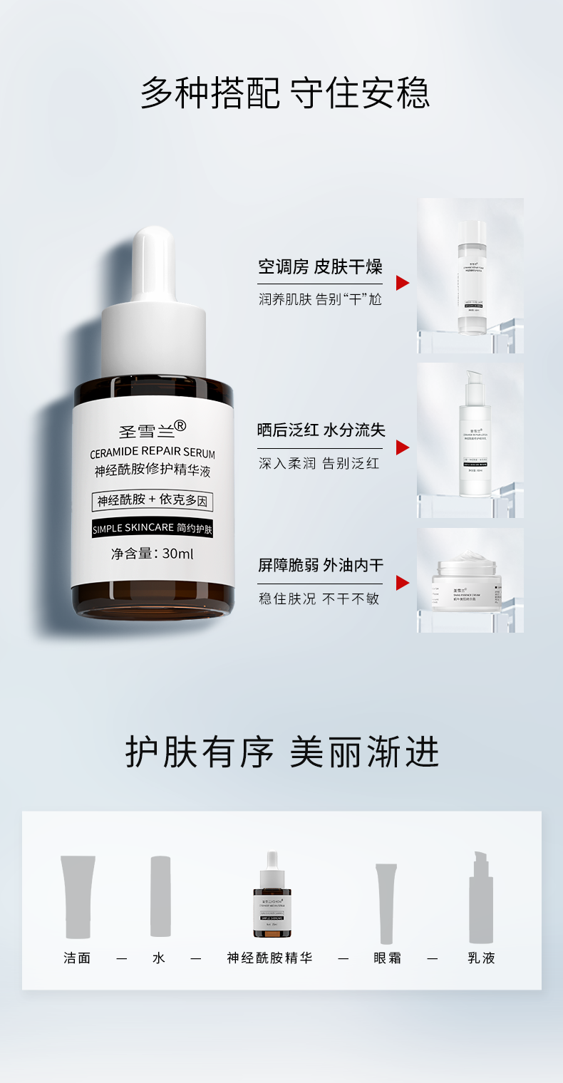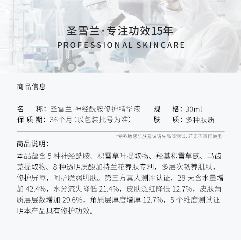 【自营】圣雪兰 厚脸皮精华30ml 多重神经酰胺28天修护敏感肌 增厚角质