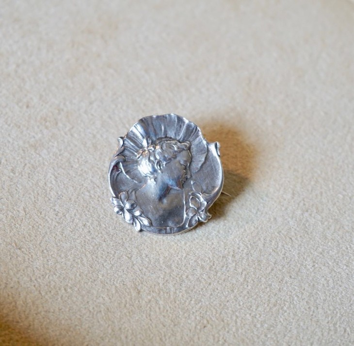 法国古董纯银浮雕art nouveau人像胸针○frantiques英国古董