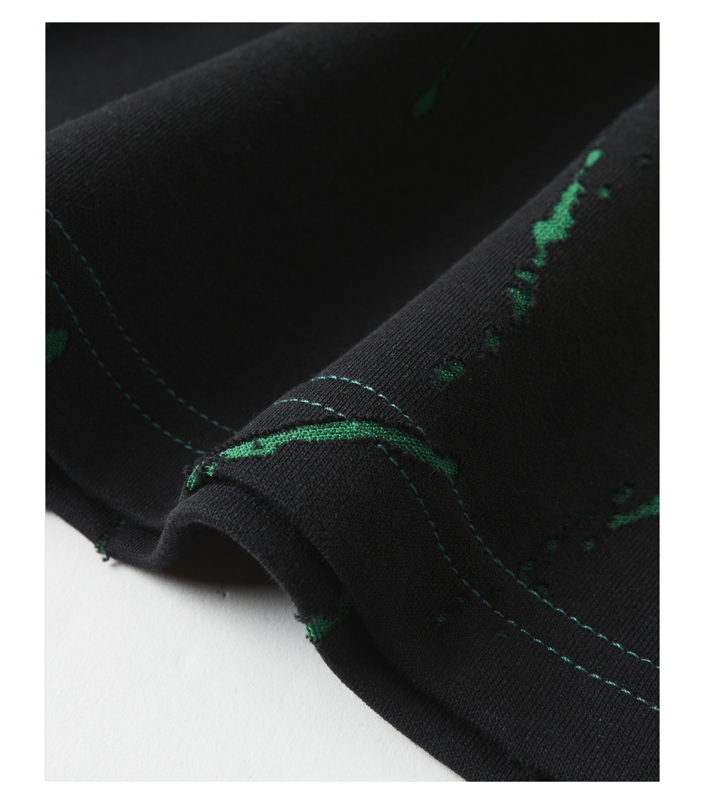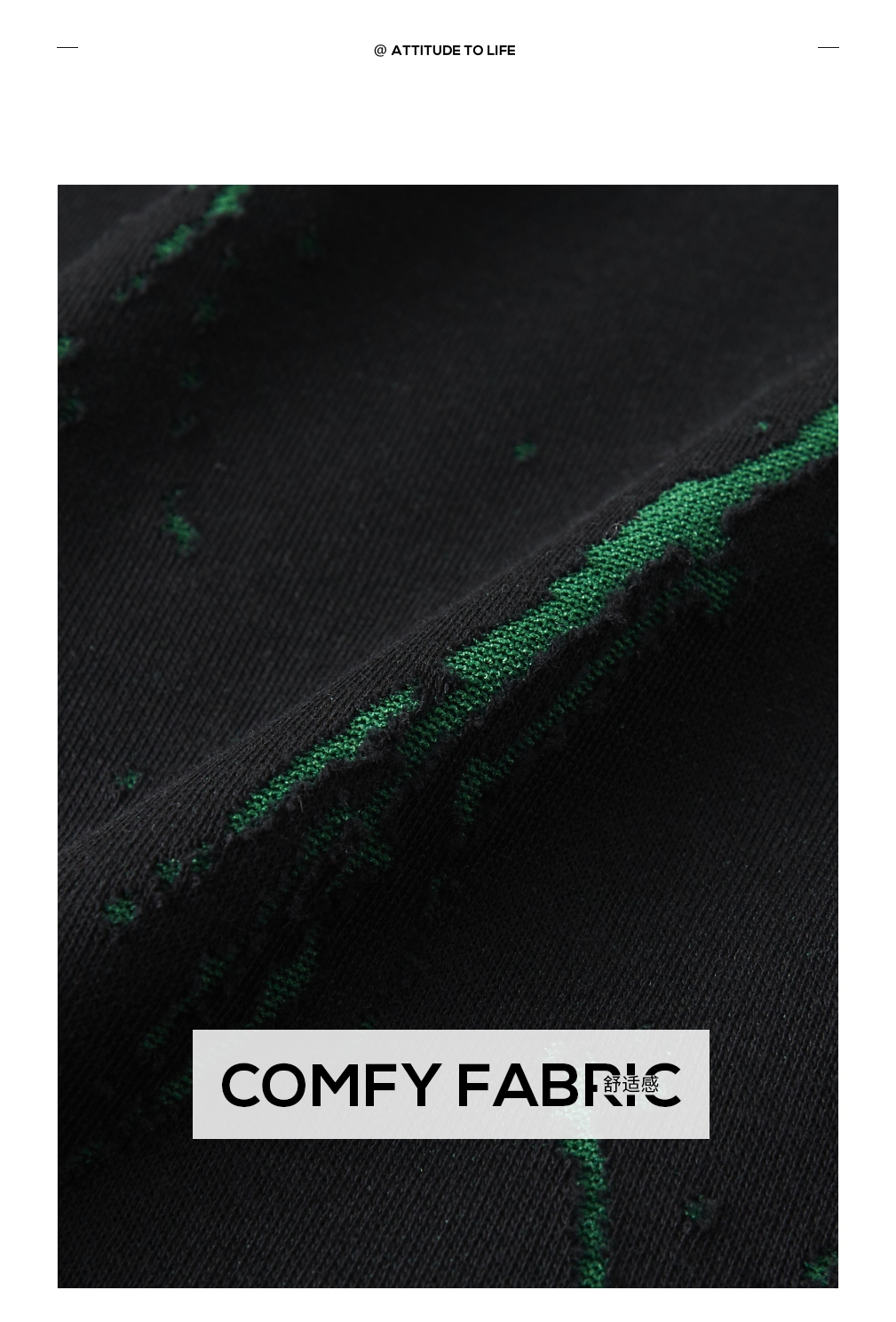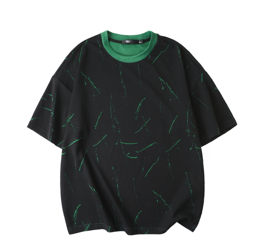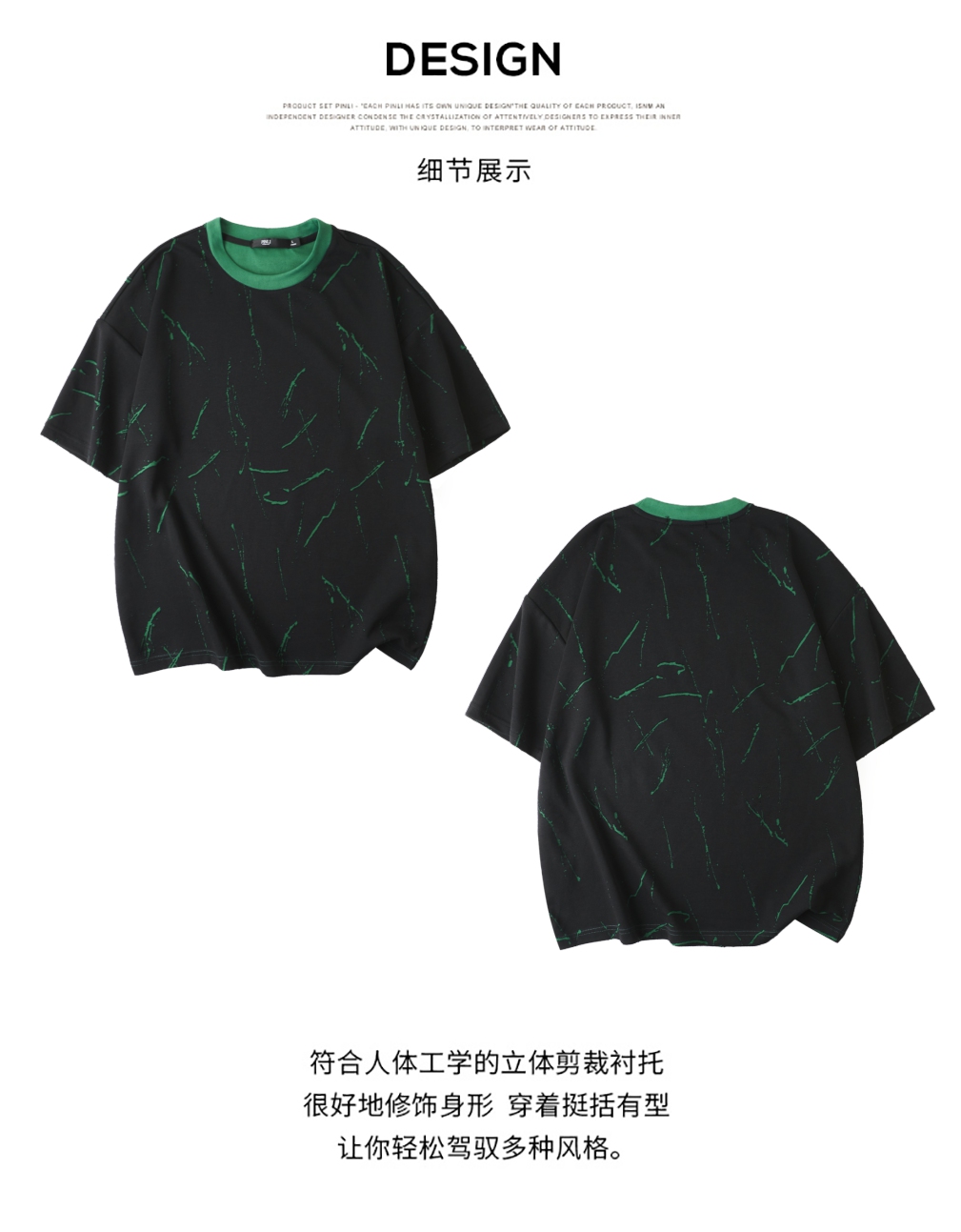 PINLI品立2025夏季新款潮流破洞短袖圆领T恤男士宽松休闲撞色上衣B252111084