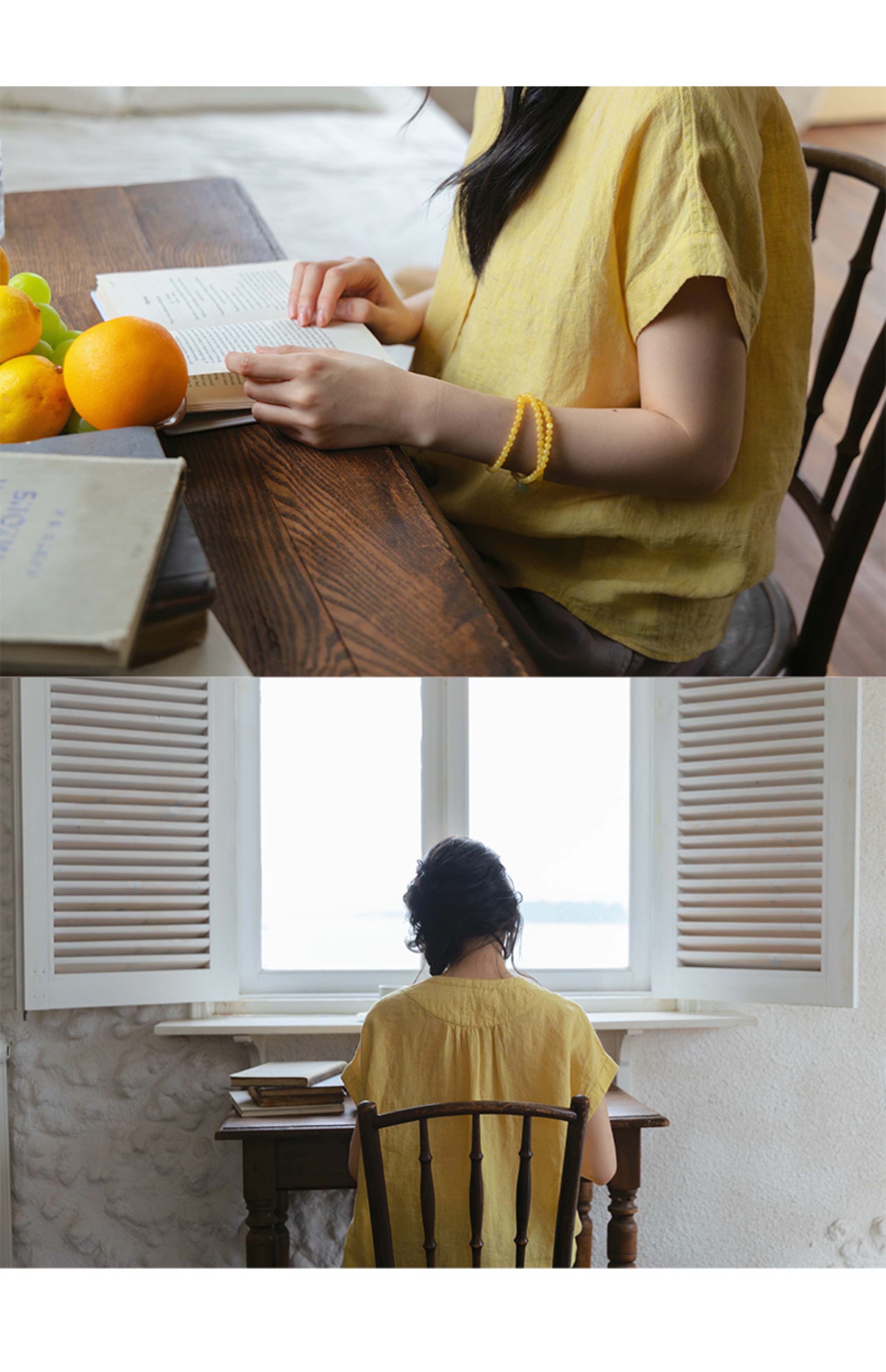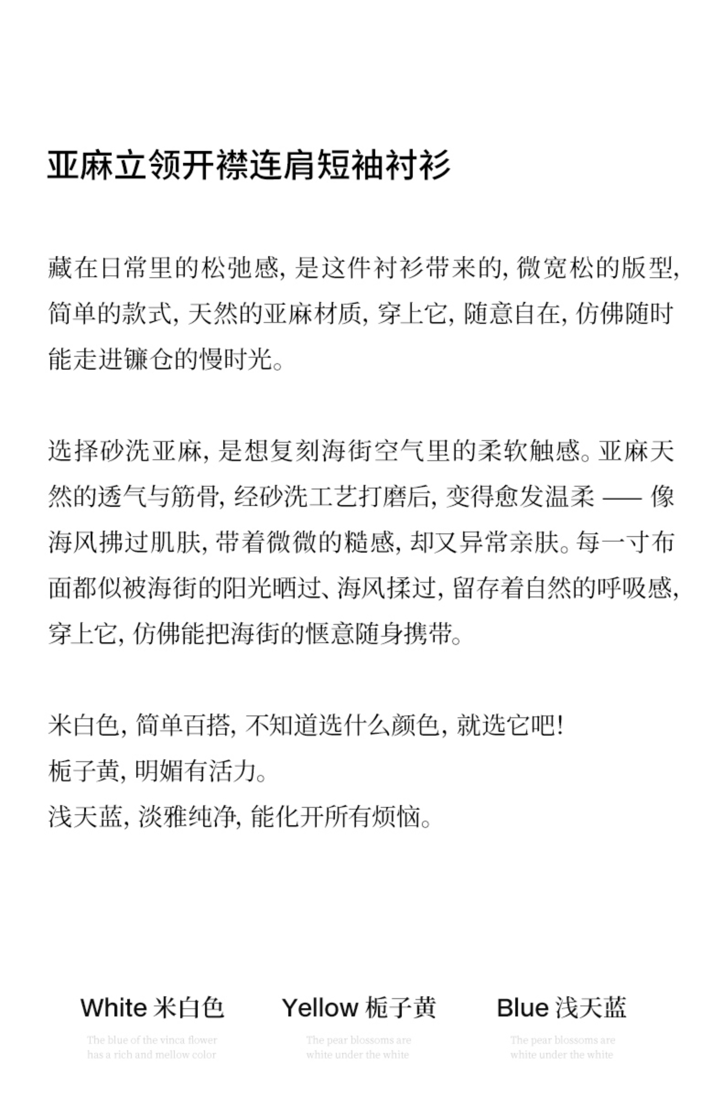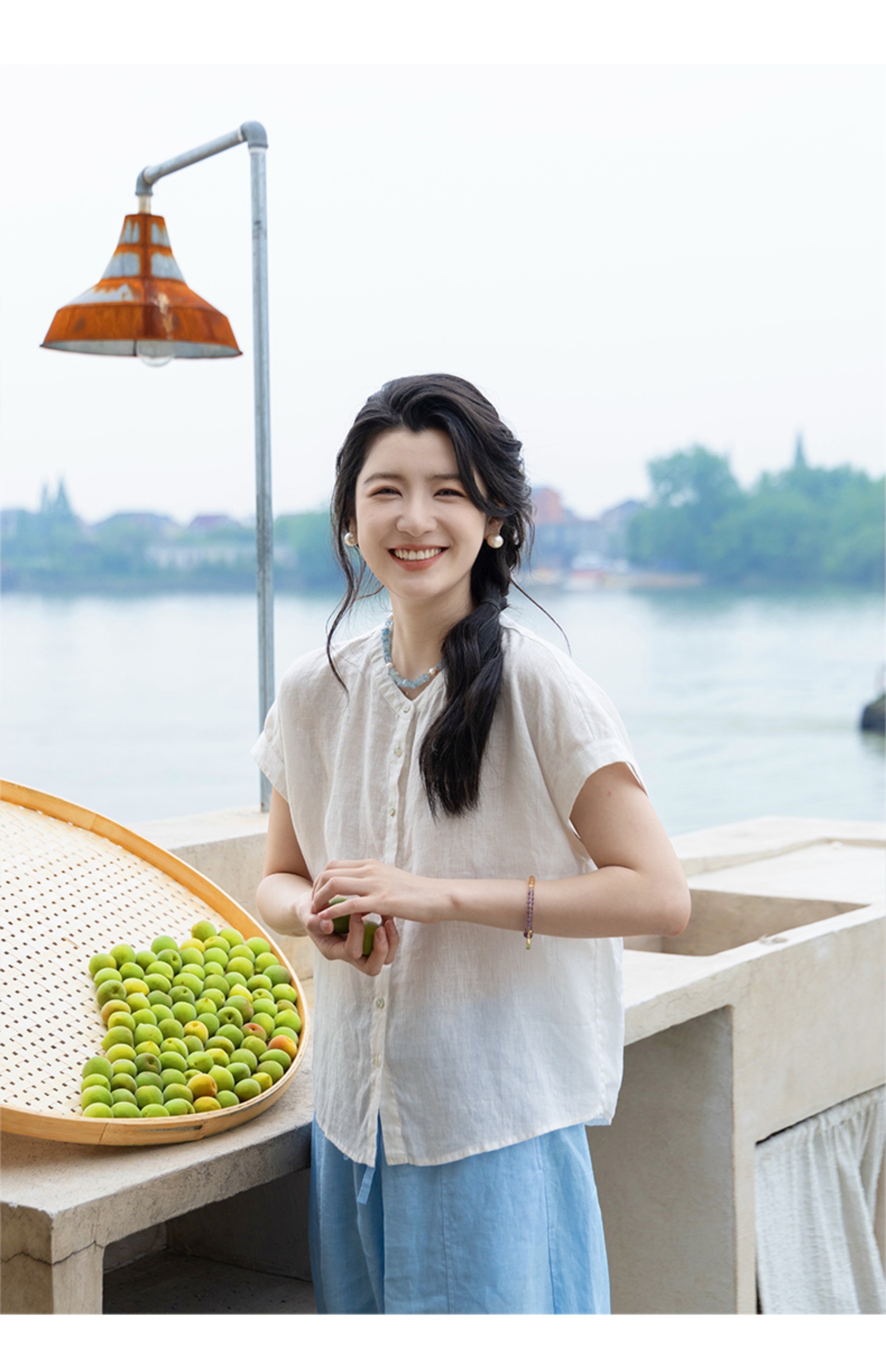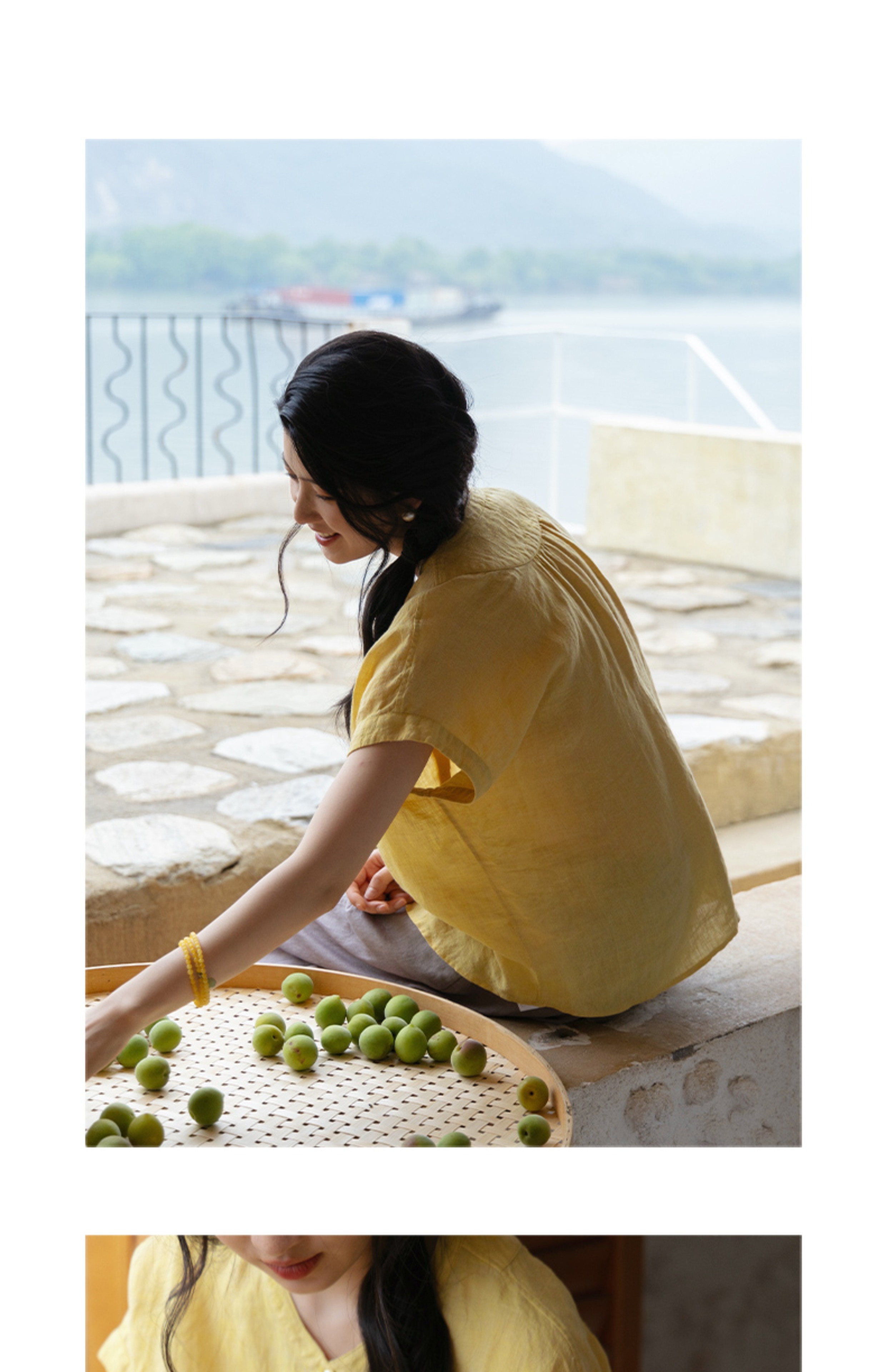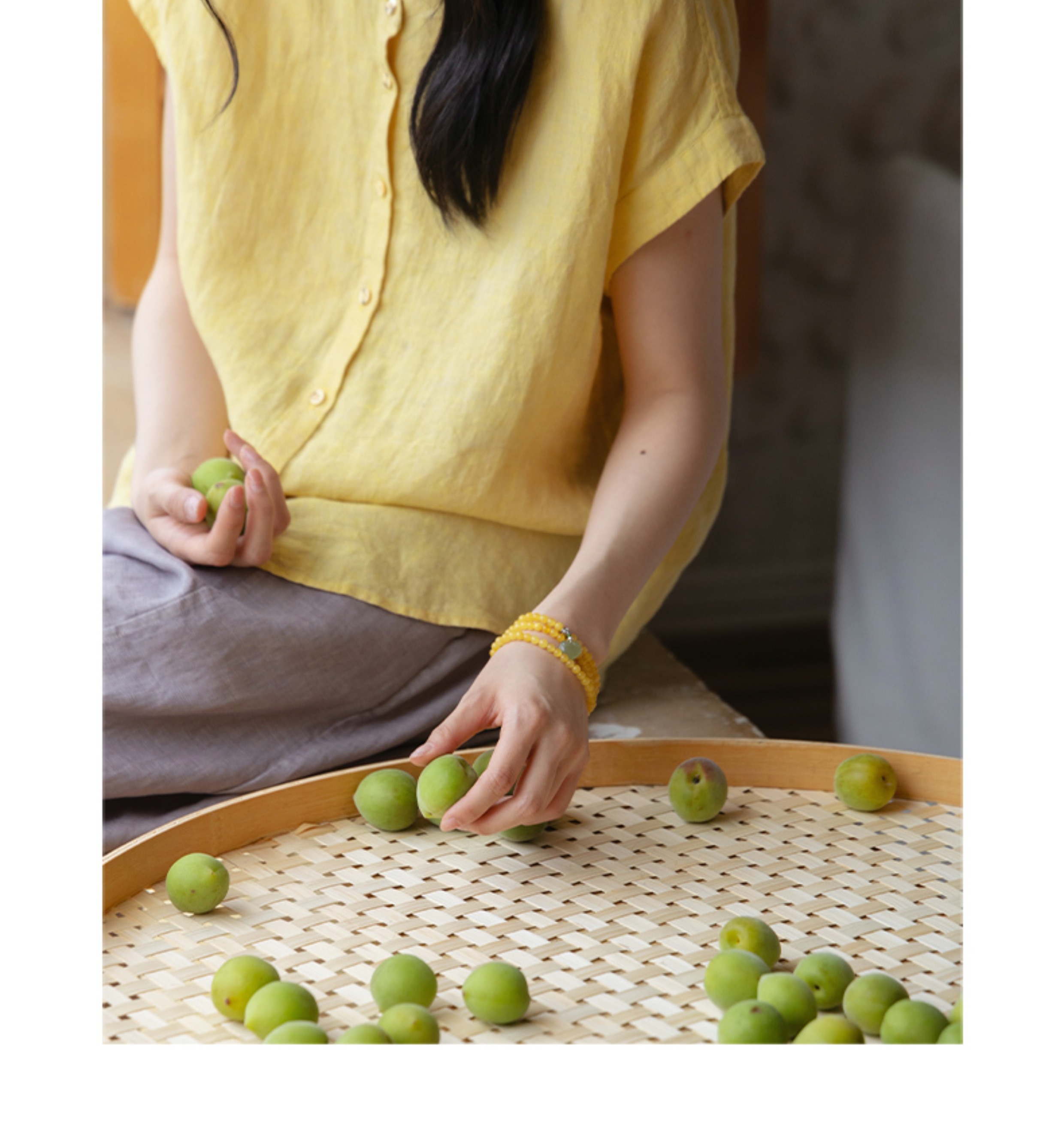 绽放旅行女装330朵/【海街日记】亚麻立领开襟连肩短袖衬衫松弛感