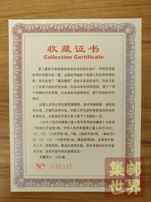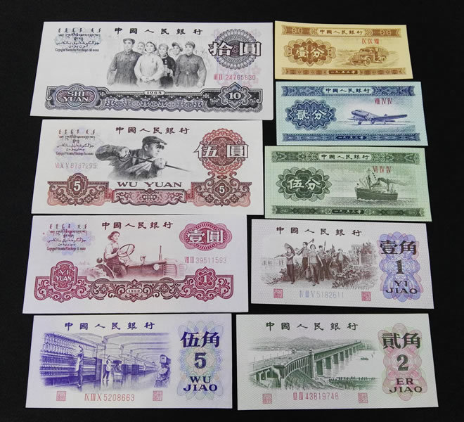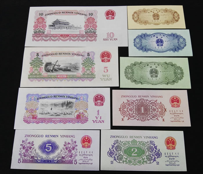 以下为第三套人民币小全套9张: