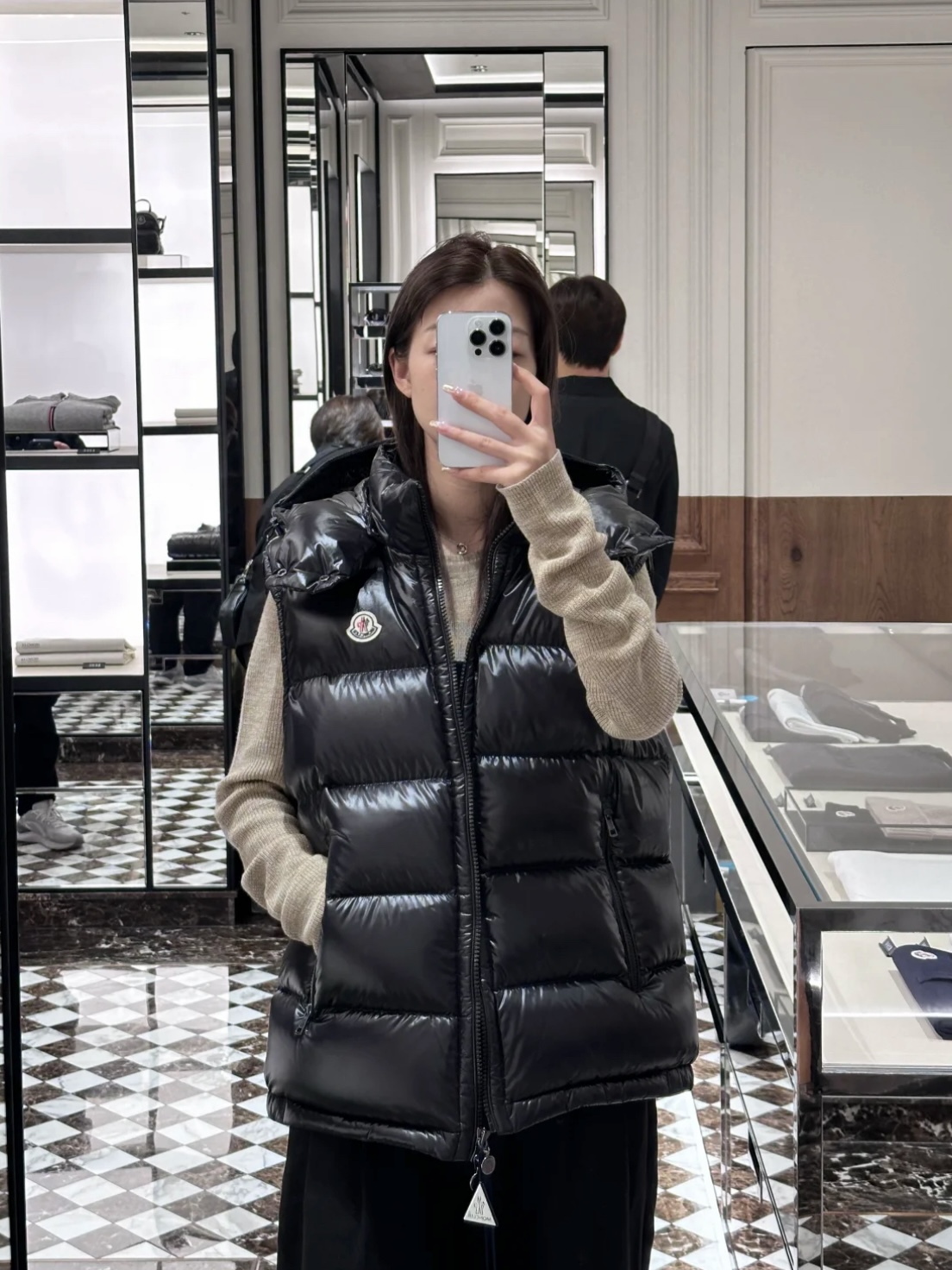 独家!190件!国标80羽绒马甲!男女同款Tib盟可睐亮面漆皮马甲