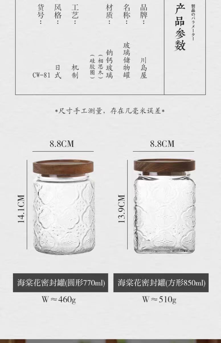 4楼Eubelle欧蓓 川岛屋玻璃密封罐食品级500-900ml 冰白糖干果陈皮储存罐茶叶罐 活动价:18.8-20.8元