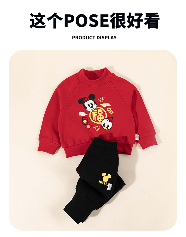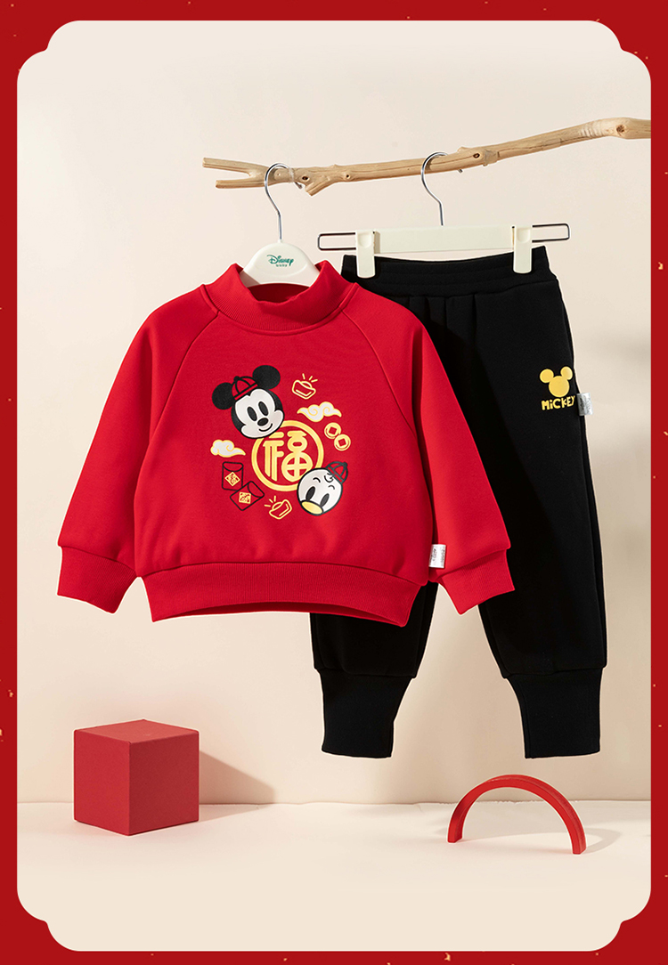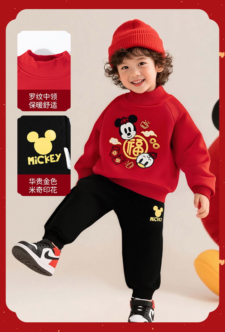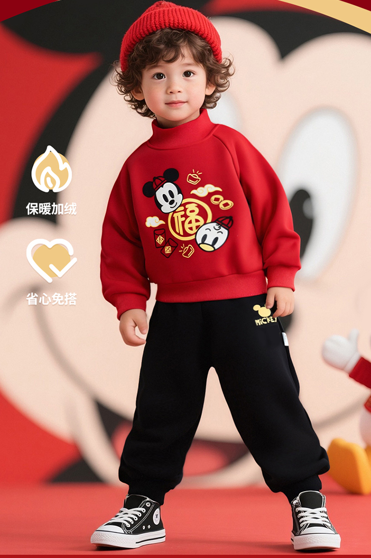 迪士尼童装男童休闲加绒卫衣套装冬季新款儿童潮酷两件套潮卫衣套装ZD3ET026