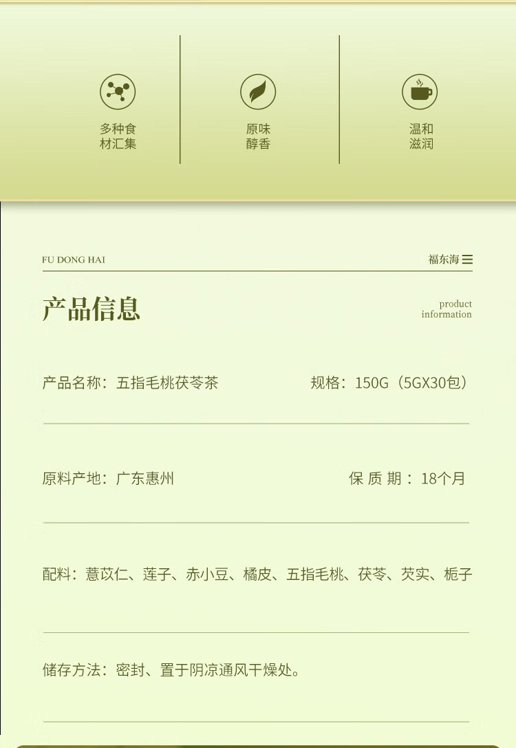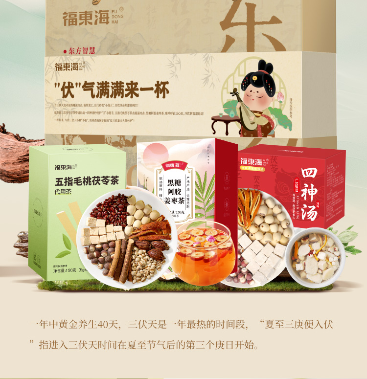福东海三伏汤组合500克 茶包夏季泡水喝祛汤湿包三伏天四神汤 五指毛桃茯苓茶初伏