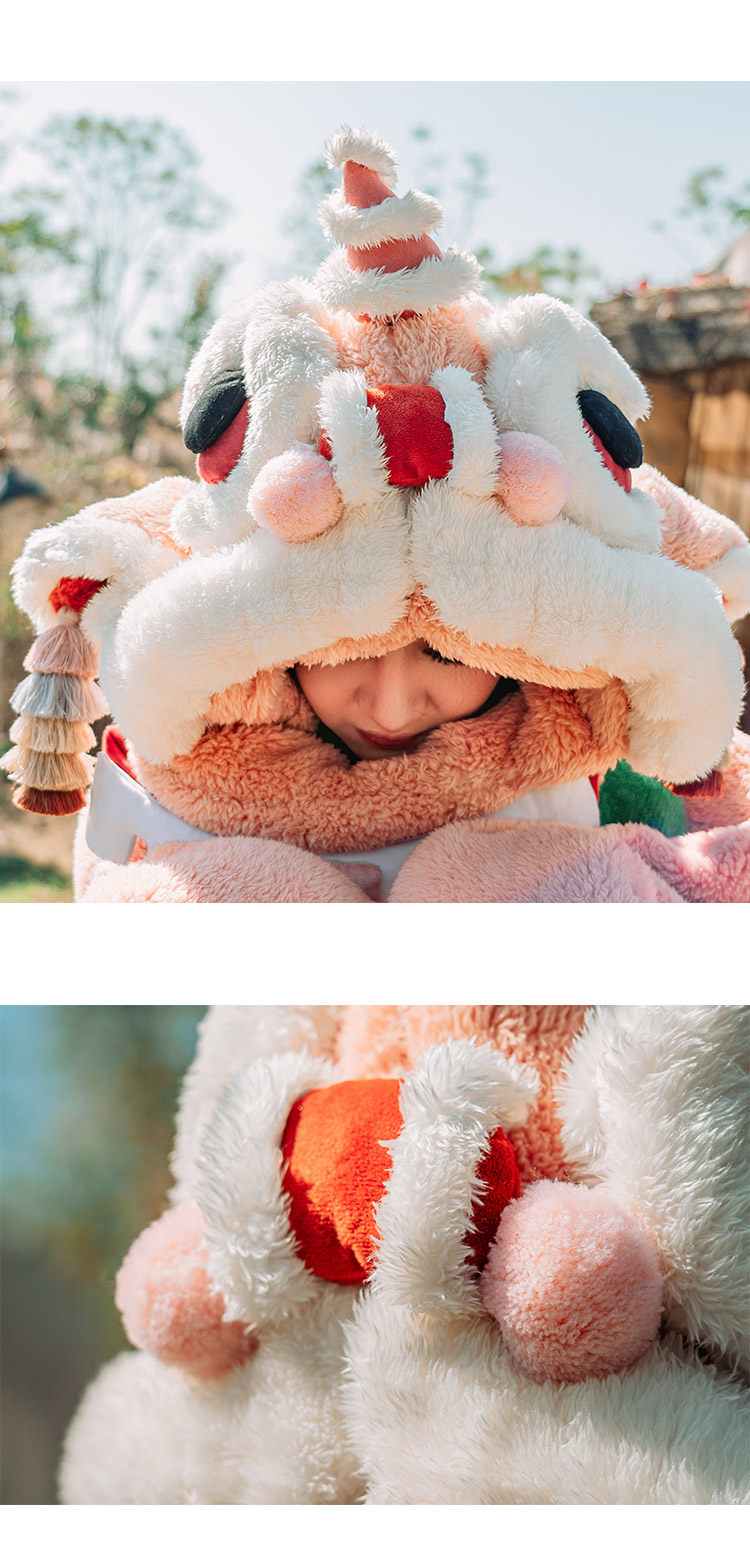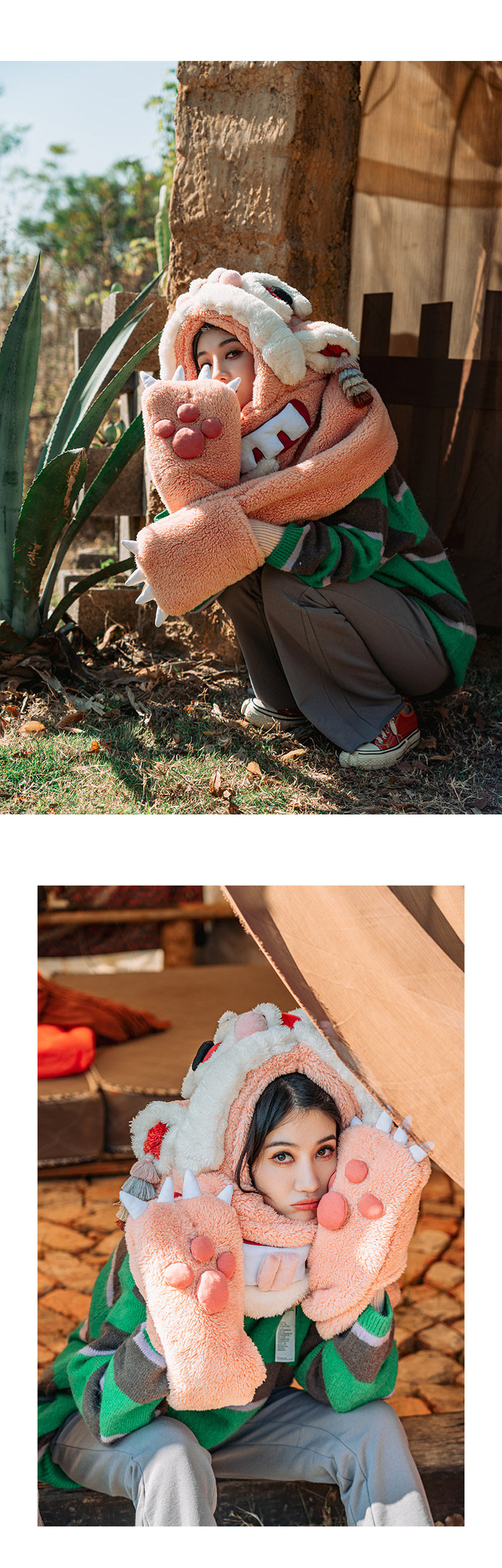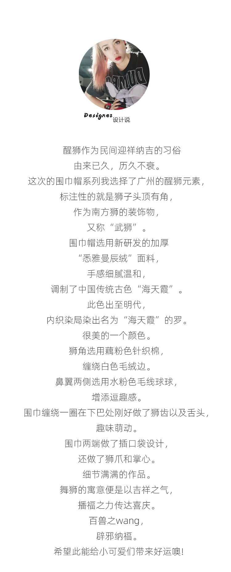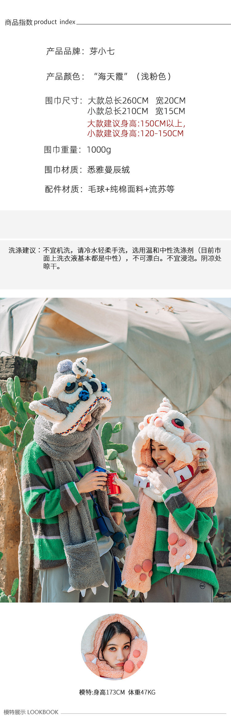 【1.21-2.6停发】芽小七手创秋冬款粉色醒狮加厚保暖防风可爱帽绒围巾女冬季围脖