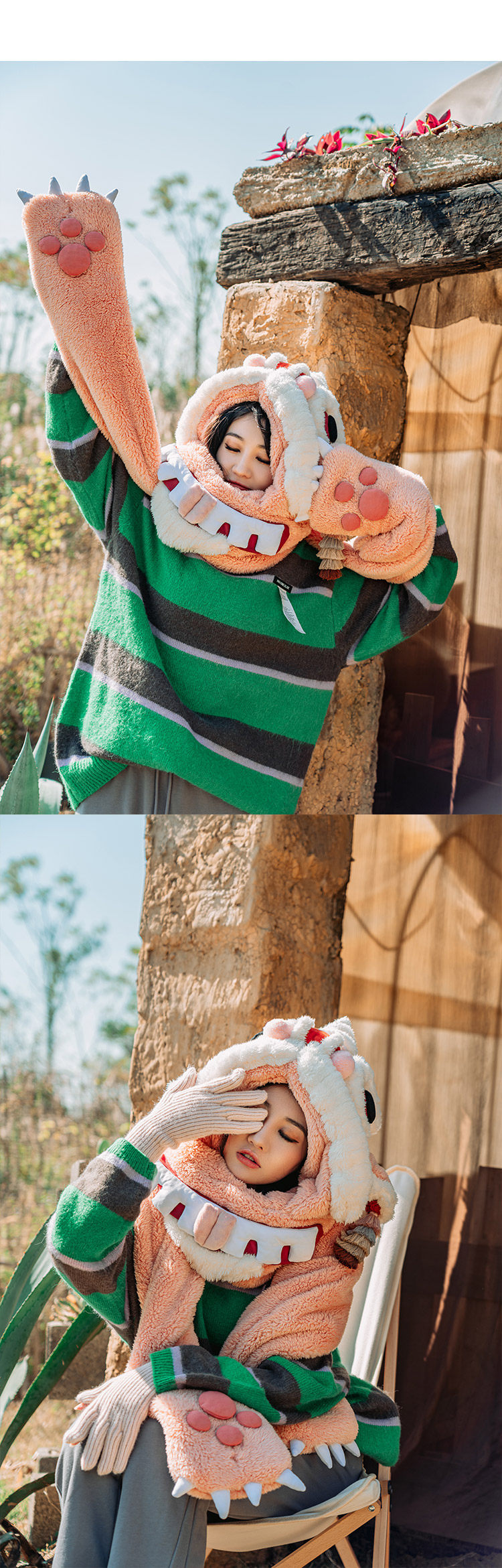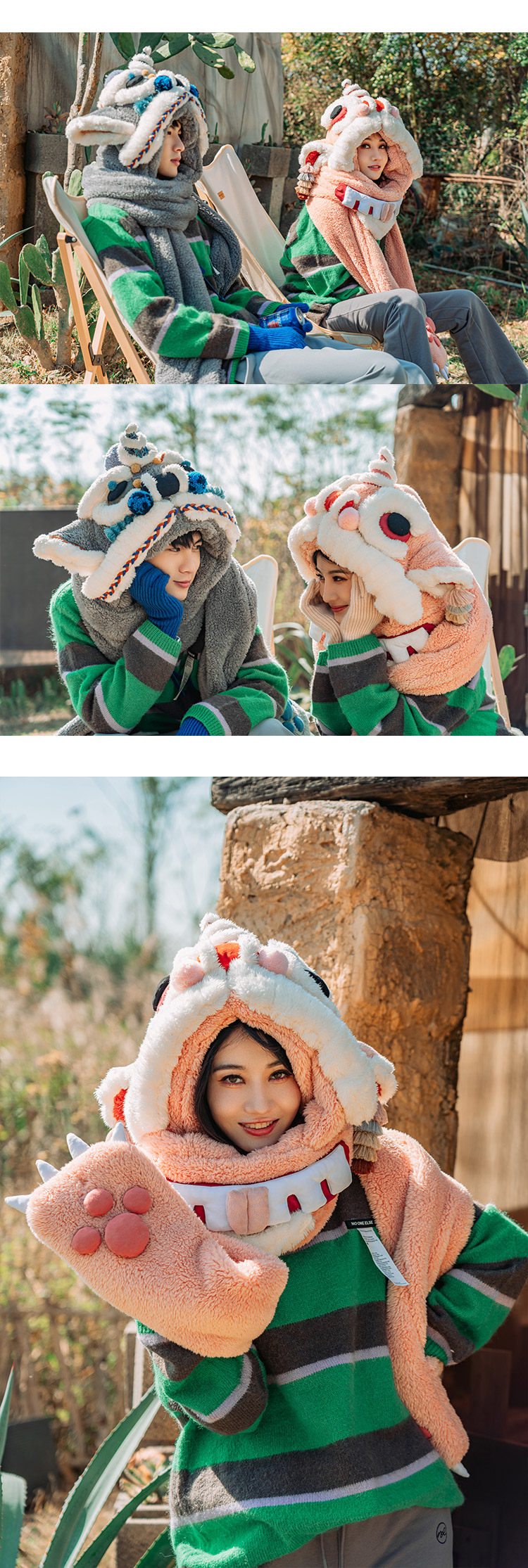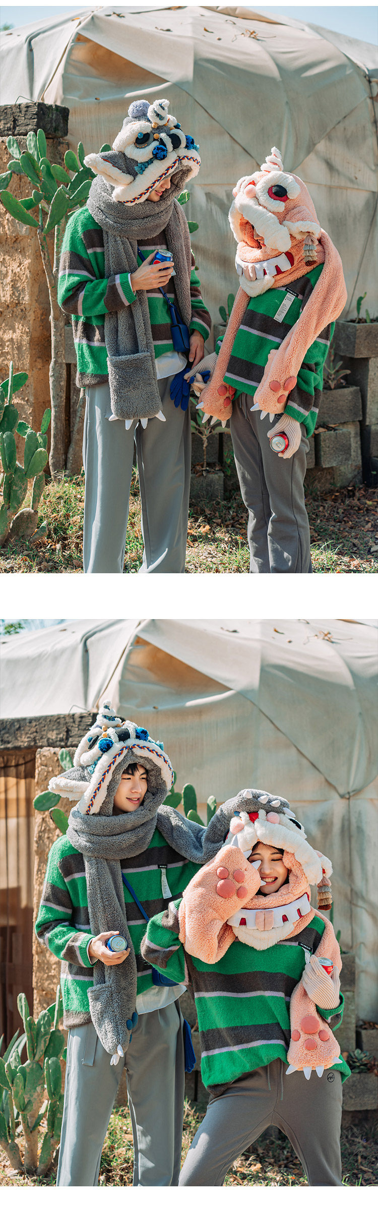 【1.21-2.6停发】芽小七手创秋冬款粉色醒狮加厚保暖防风可爱帽绒围巾女冬季围脖