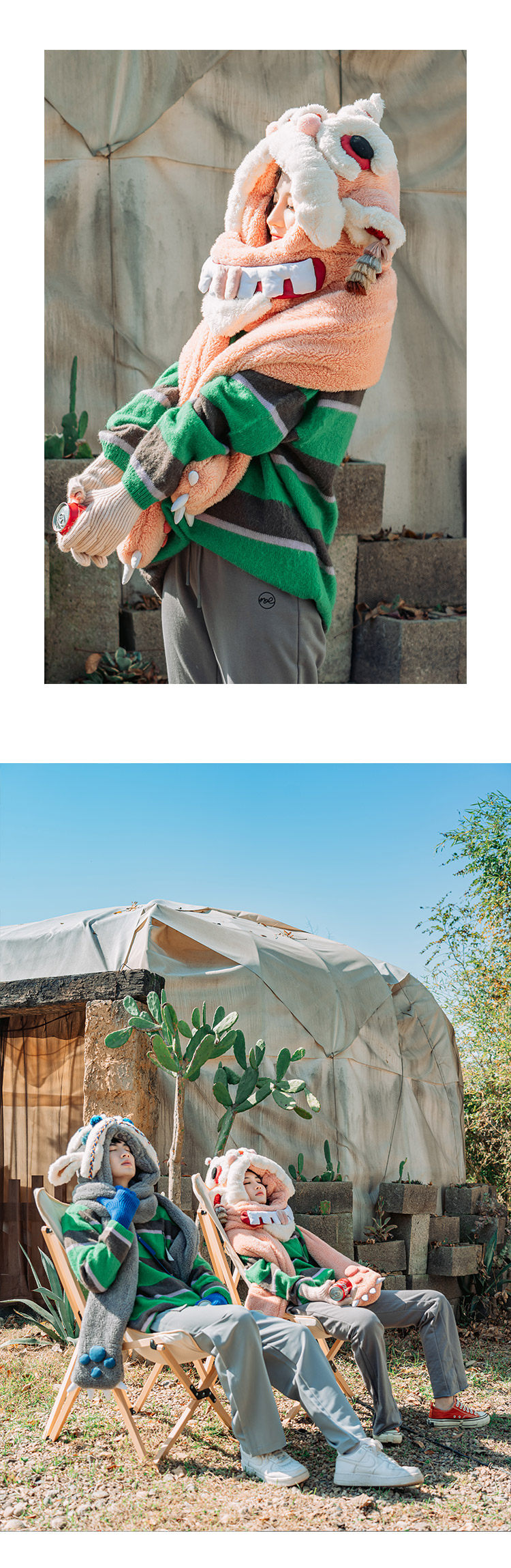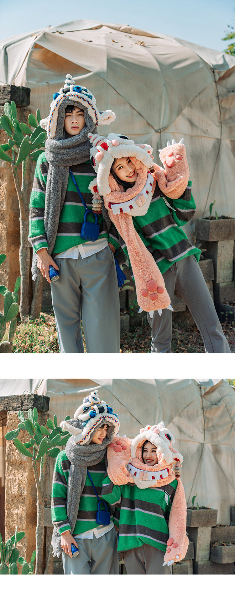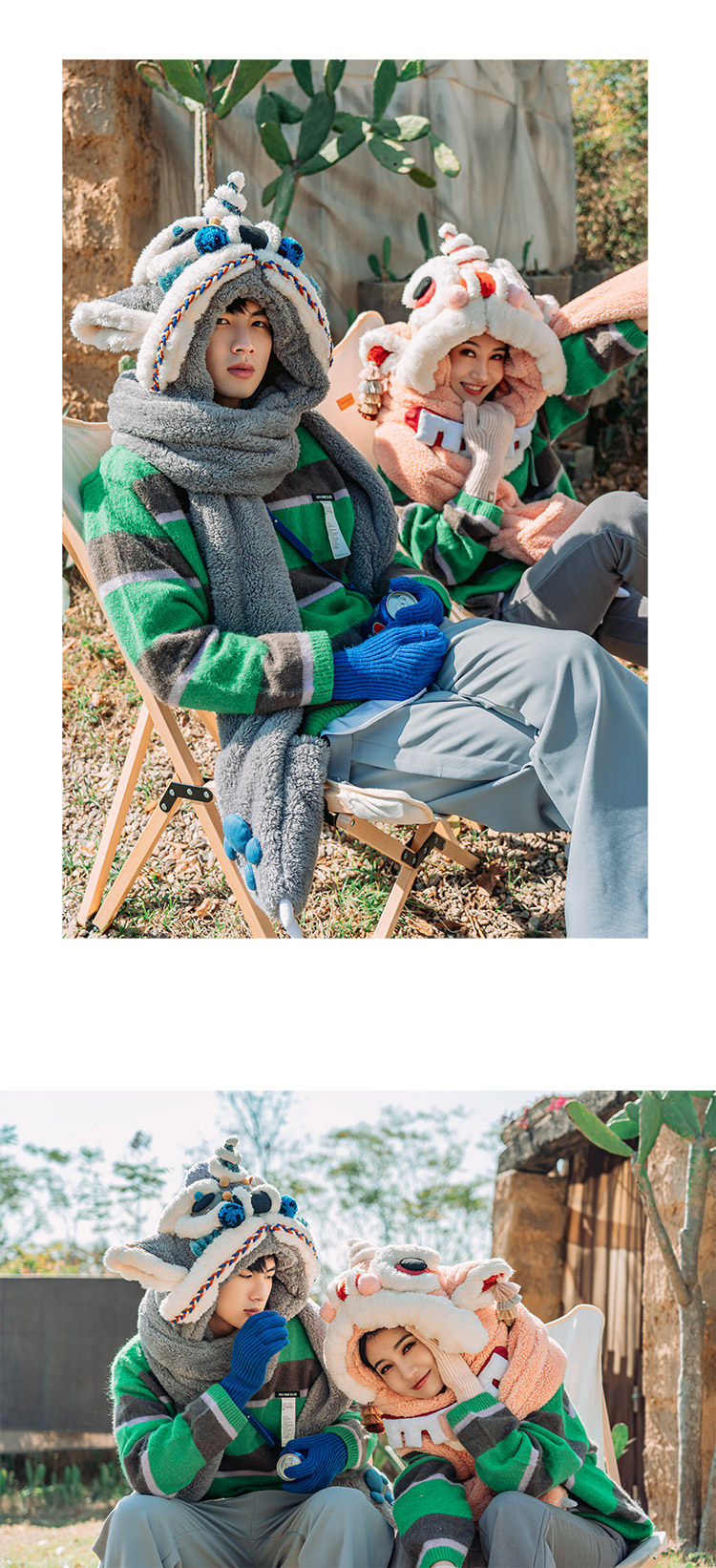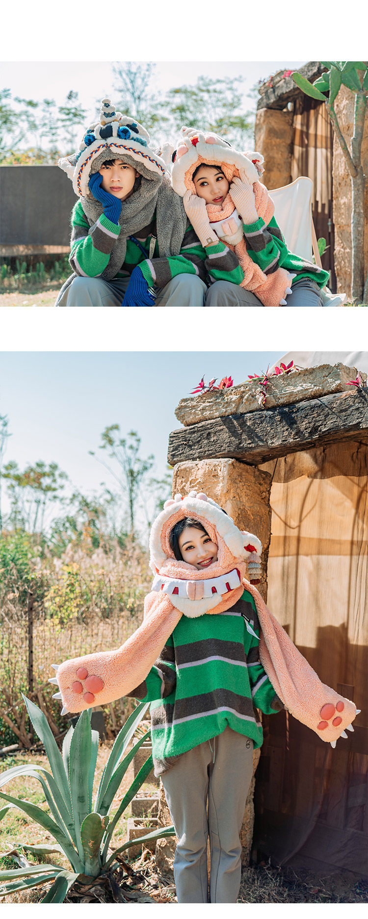 【1.21-2.6停发】芽小七手创秋冬款粉色醒狮加厚保暖防风可爱帽绒围巾女冬季围脖