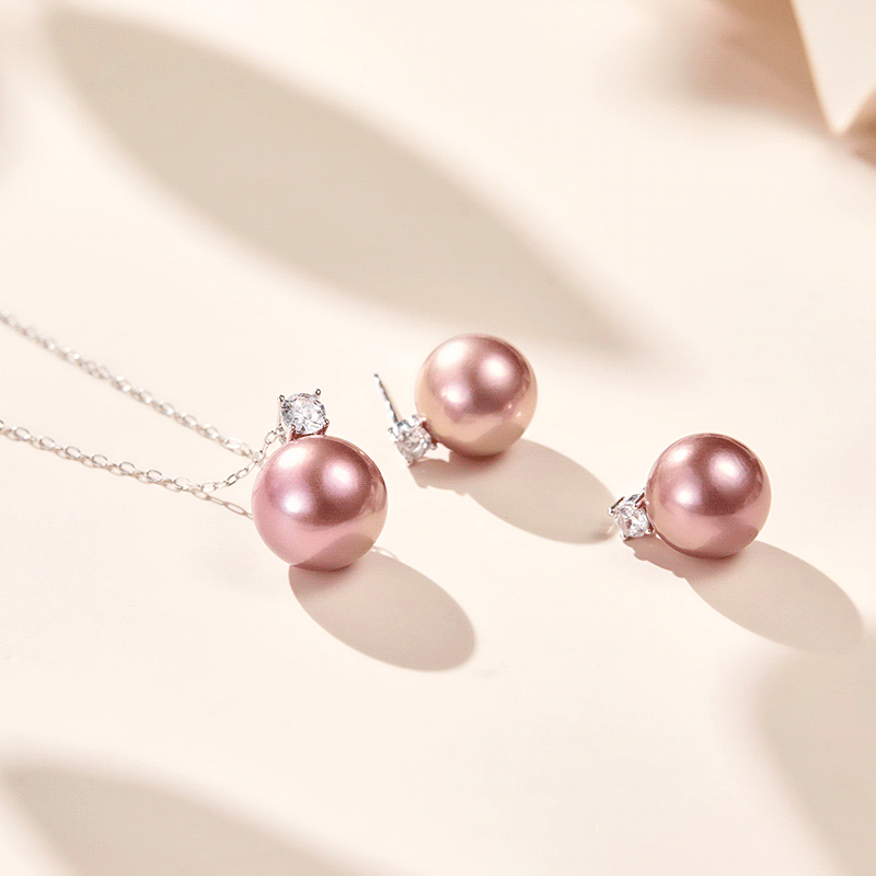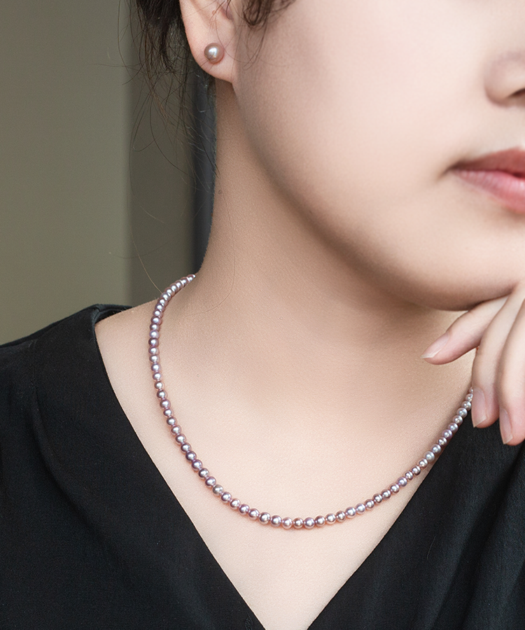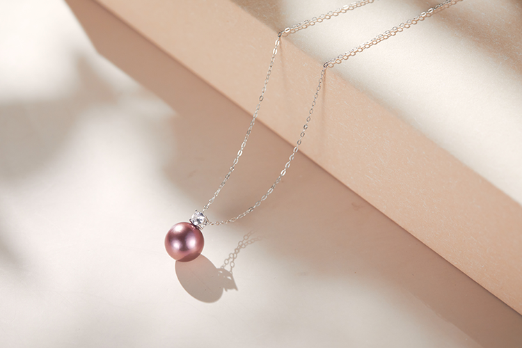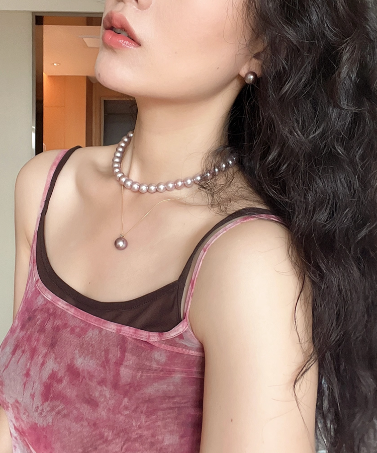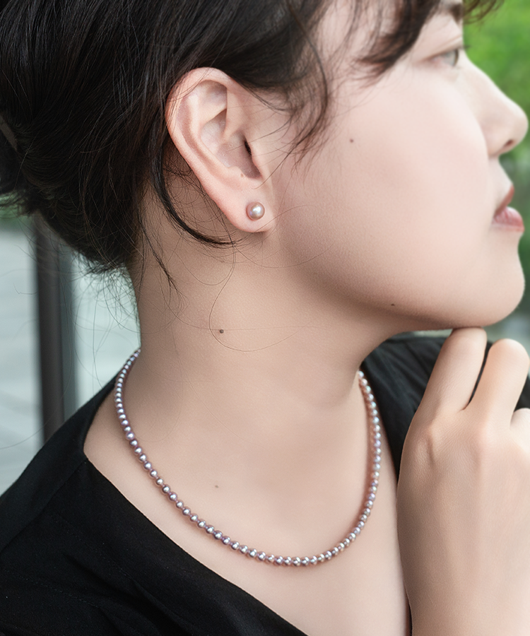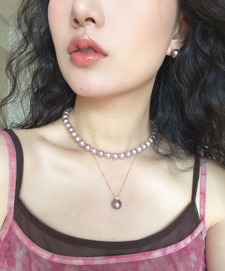 珍珠点位在4-8mm,属于小米珠系列,它肉眼可见的小巧精致,紫中泛着肉粉,一眼看上去,温柔极了,妖而不浊,像极了夜空中温柔的星云,适合各种脸型和身材的女性佩戴。