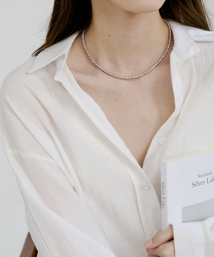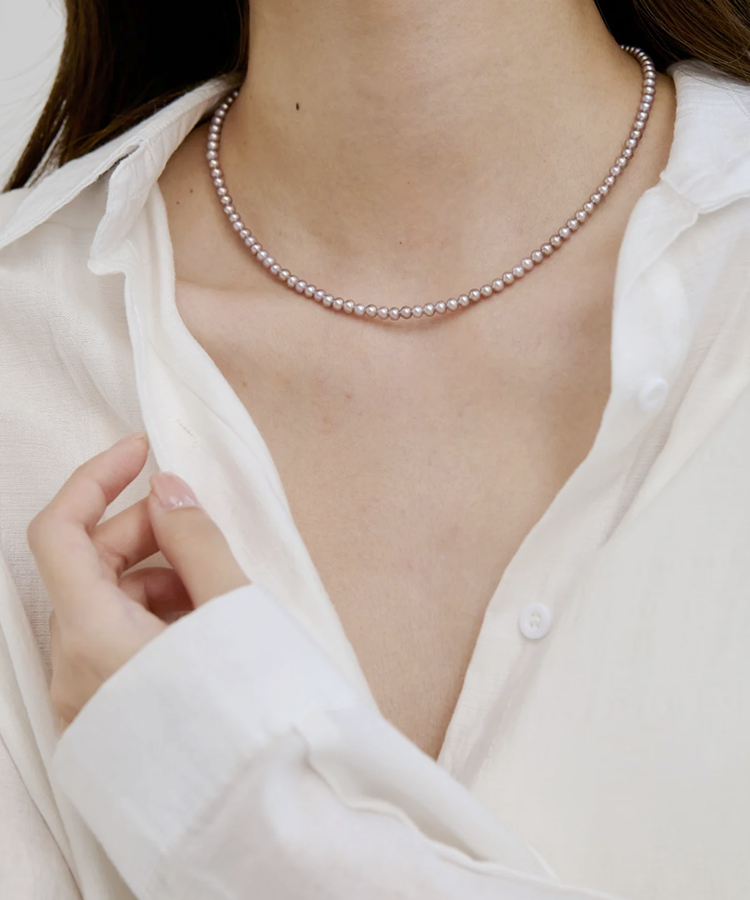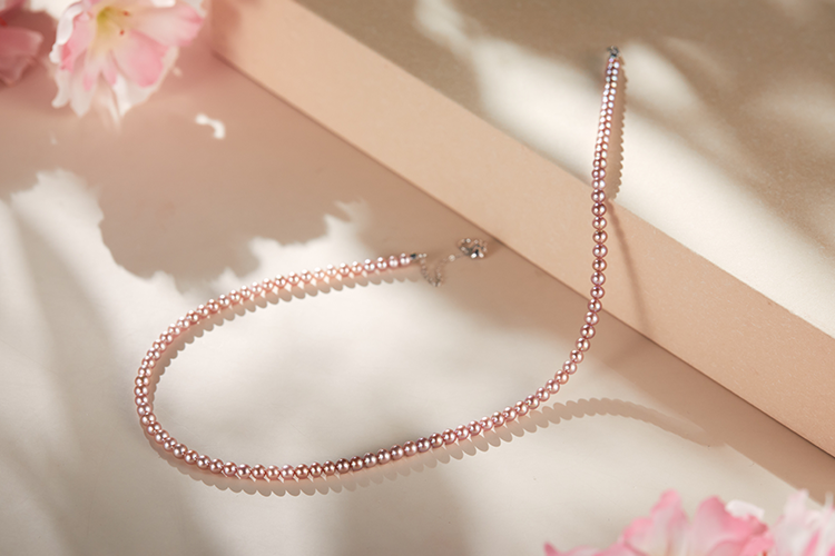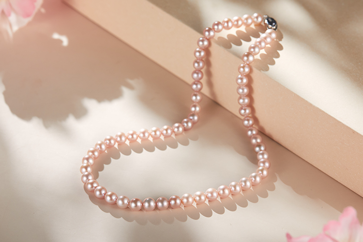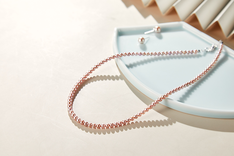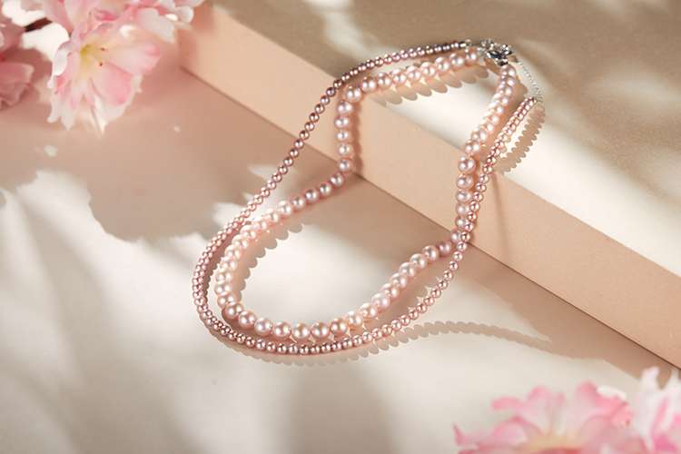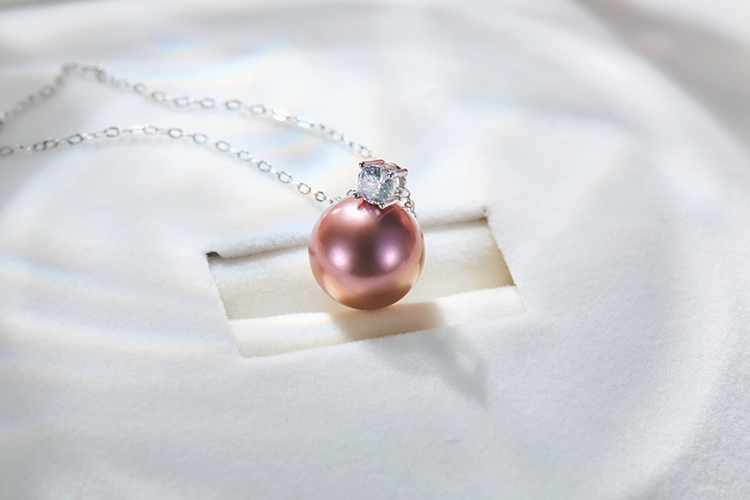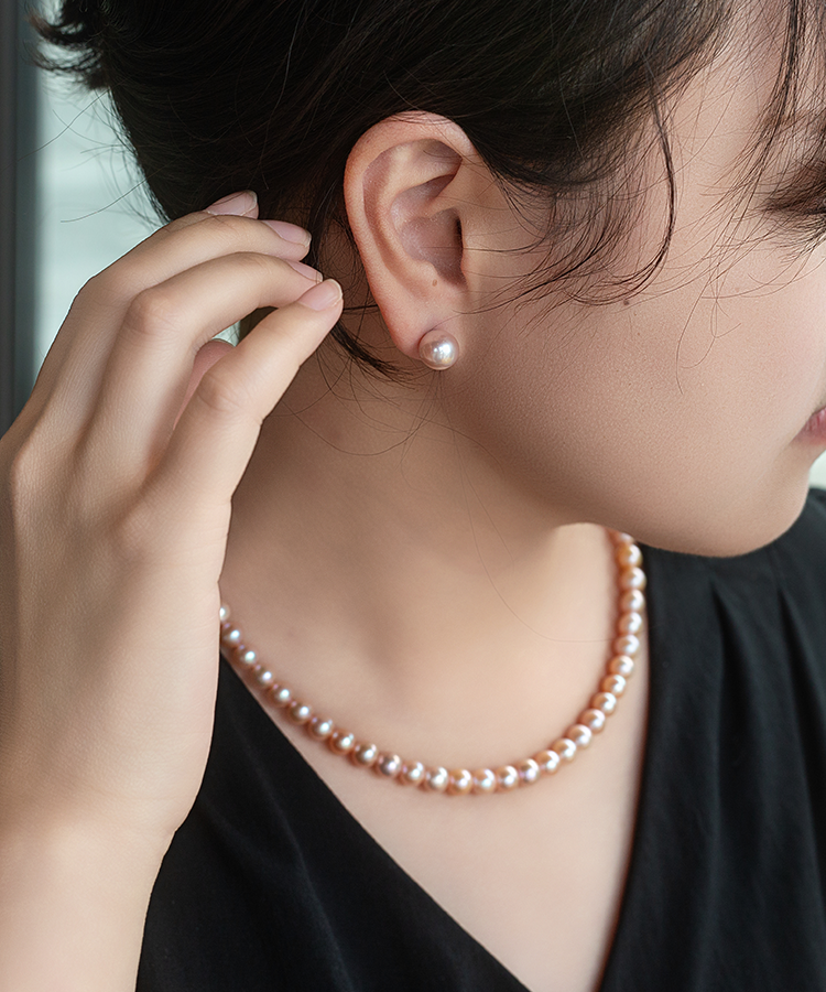 珍珠点位在4-8mm,属于小米珠系列,它肉眼可见的小巧精致,紫中泛着肉粉,一眼看上去,温柔极了,妖而不浊,像极了夜空中温柔的星云,适合各种脸型和身材的女性佩戴。