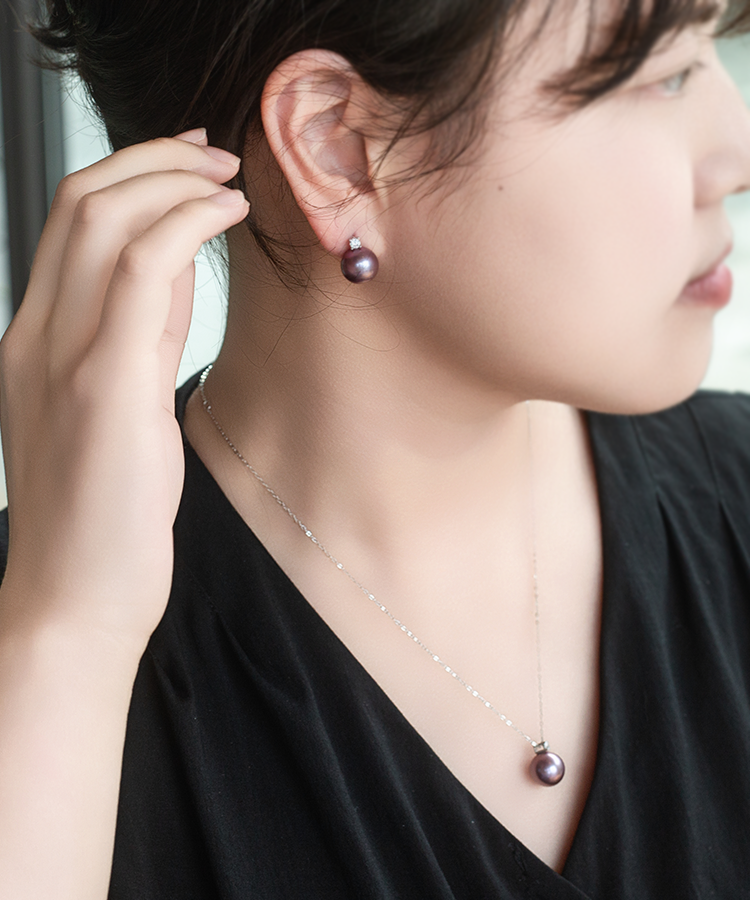 之前公司有位同事,她一直想尝试珍珠,就担心老气。我推荐她试戴了星空紫系列,佩戴后不仅没有显老,反而更加灵动可爱,好看极了。