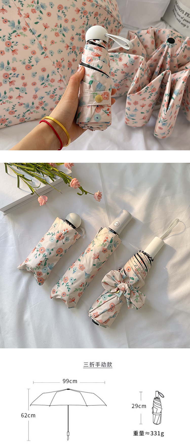 AVRNA法式高级感碎花晴雨伞 简直美翻了 0透光伞面高密织伞布 UPF大于50+狂晒不黑,就是这么棒