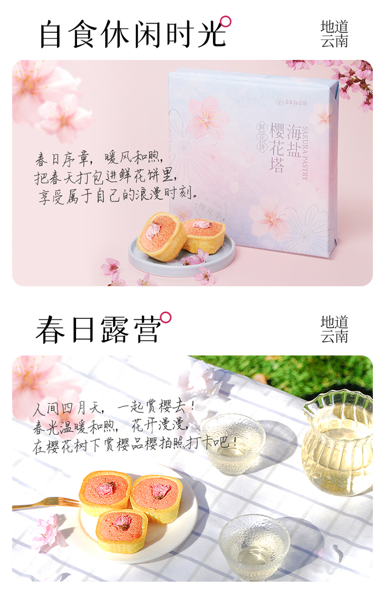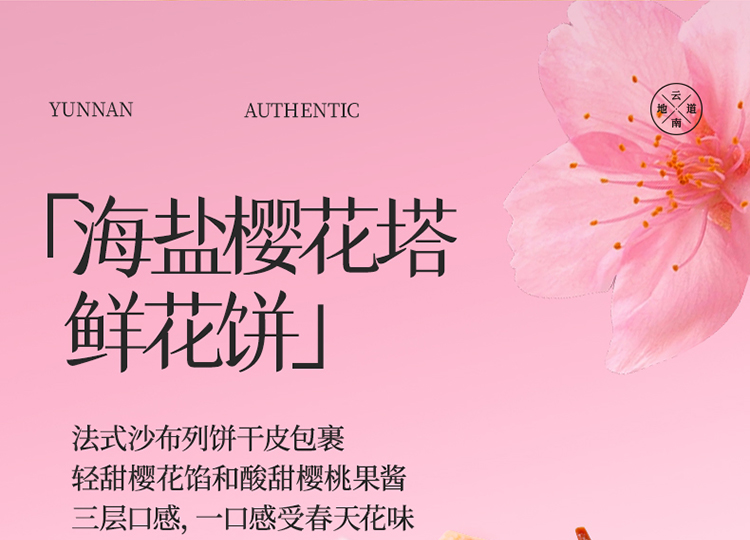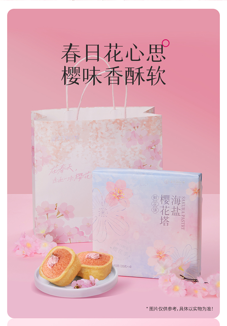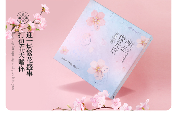 嘉华鲜花饼 海盐樱花塔鲜花饼礼盒 春日礼盒 140g