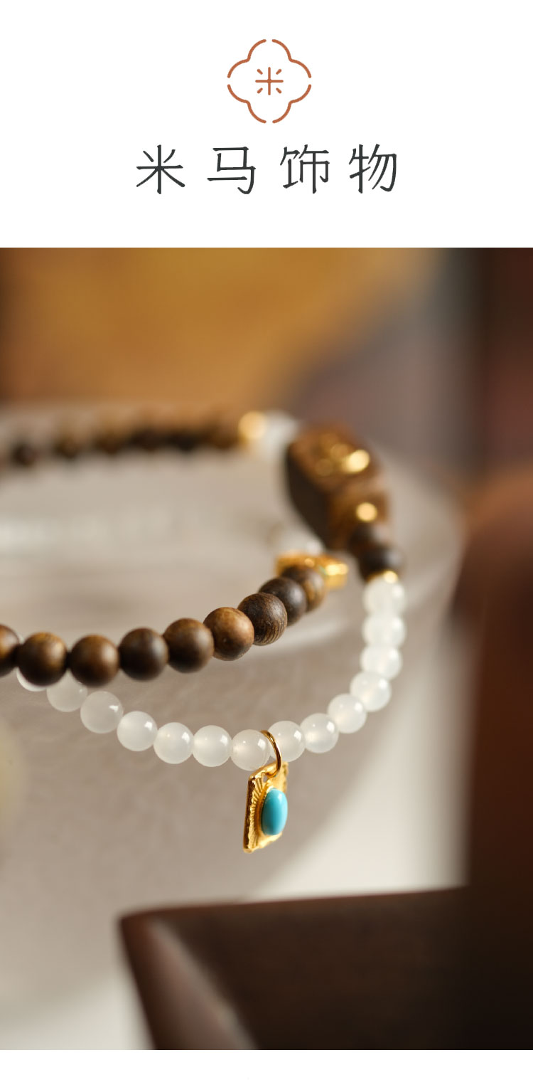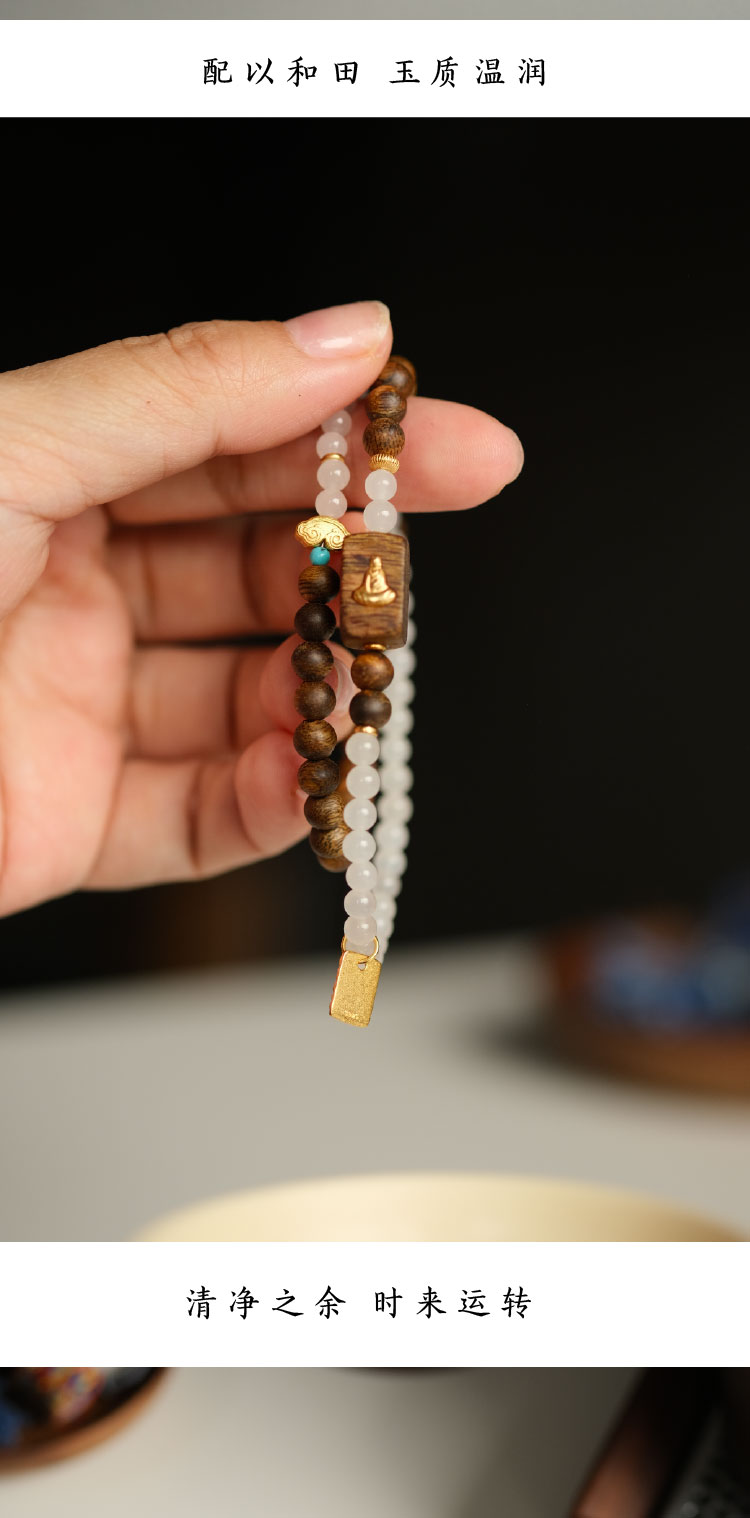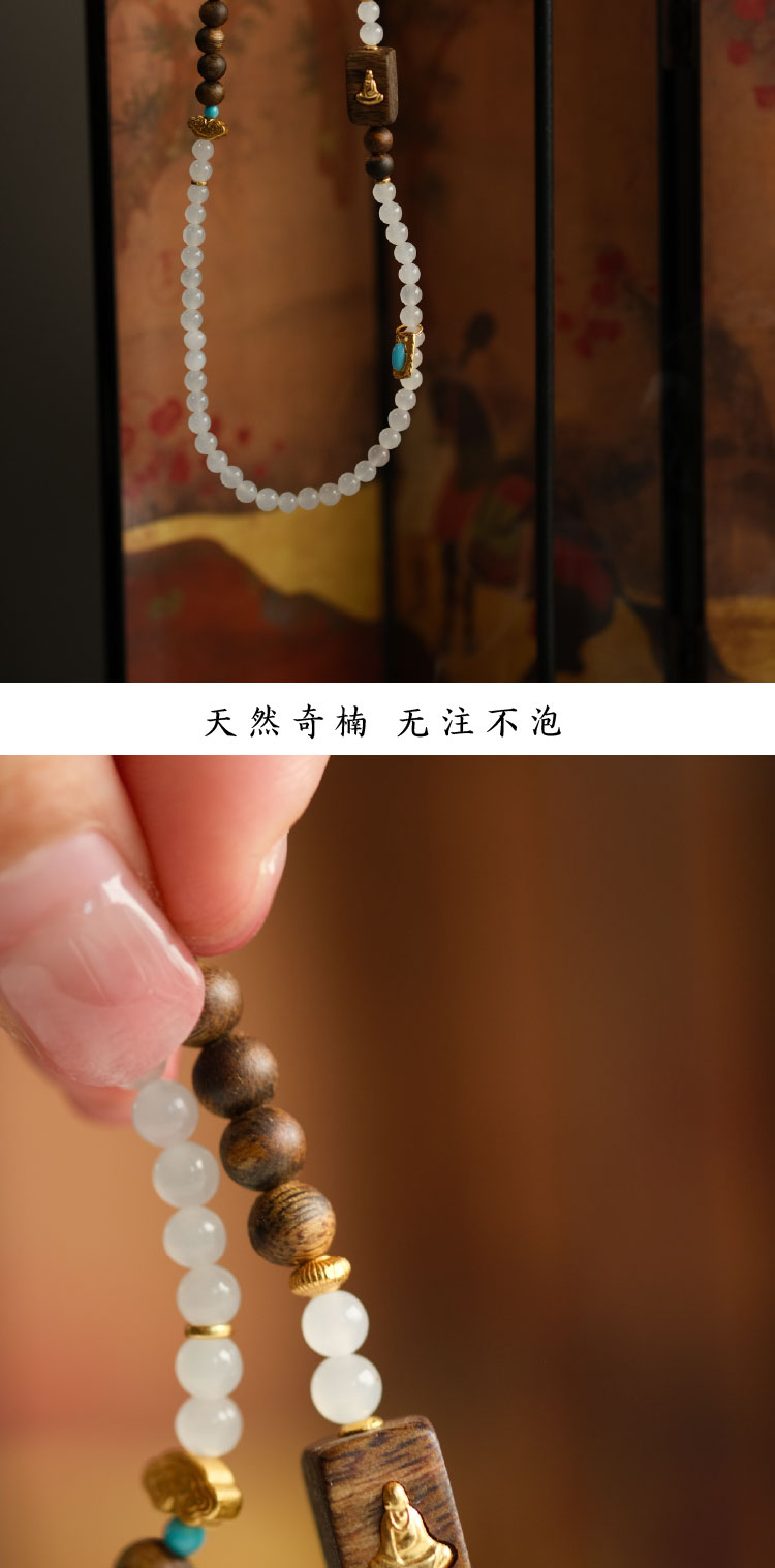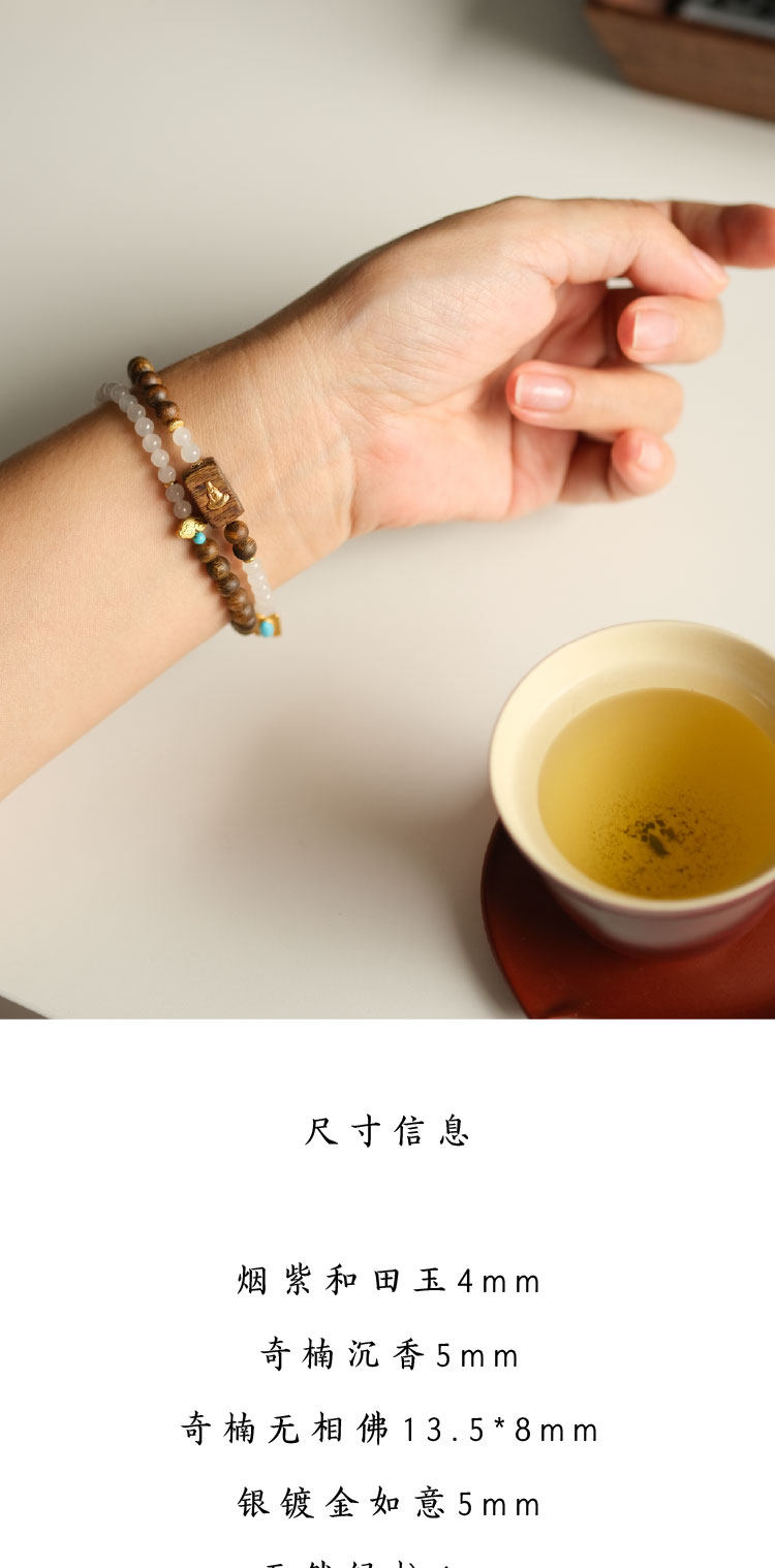 米马饰物 天然奇楠配烟紫和田玉 “石”来运转