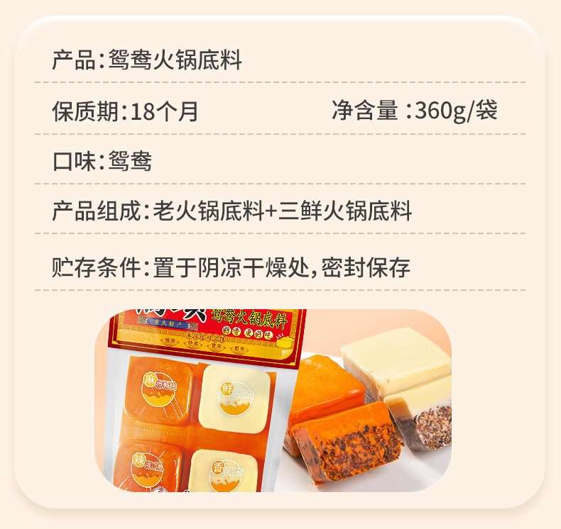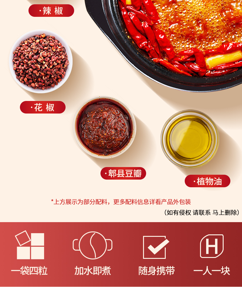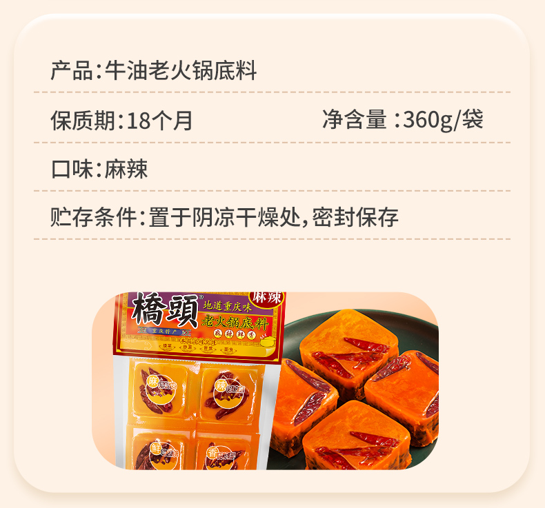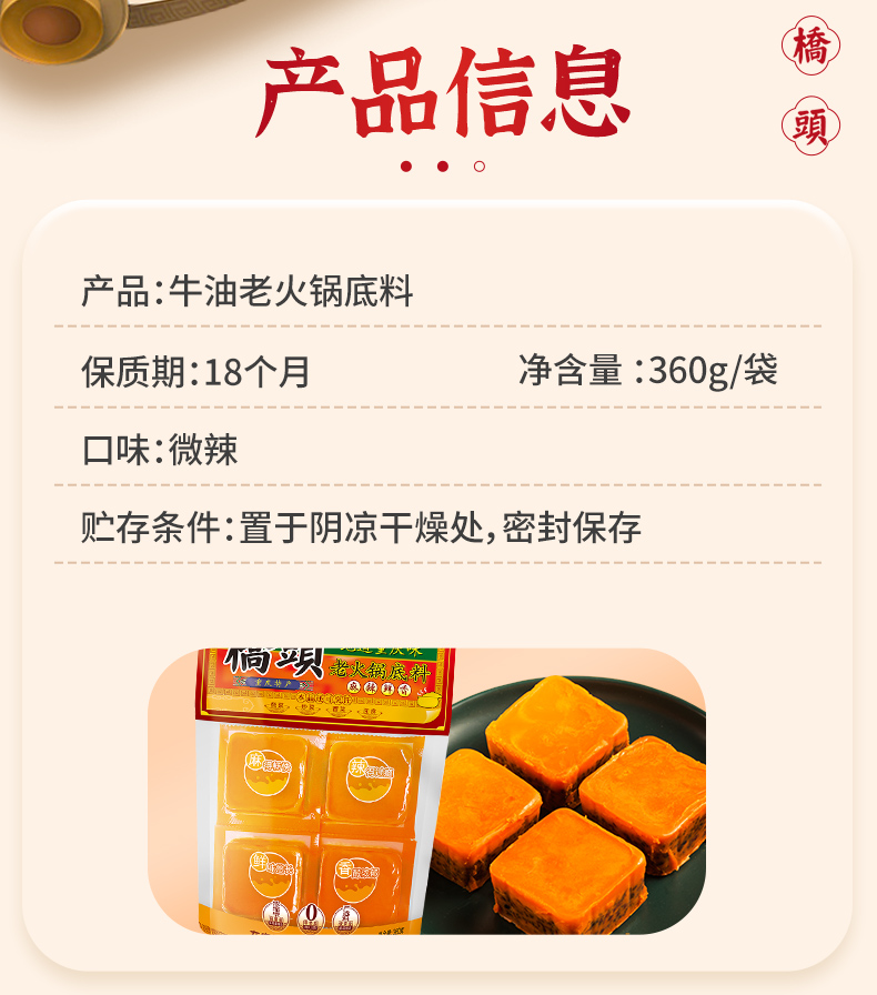 桥头火锅牛油底料360g小块装90g*4