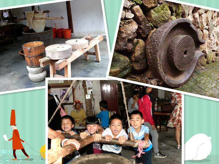 11:10 前往亲子乐园进行磨豆腐体验和独轮车,由工作人员介绍制作豆腐的流程,提供相关材料。PS:可提供之前已成型的豆腐供品尝或各自磨好的豆浆带到农家乐进行深加工。