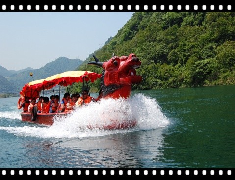 14:40 抵达新安江龙舟漂游。新安江龙舟漂游码头位于新安江风月轩码头,漂游的整个行程为6千米,游览时间40分钟左右。一路上,两岸山色青翠秀丽,江水清澈碧绿,可欣赏到紫金锁澜、稀有虹鳟、镜中银鱼、罗桐夕照、五桥争色、月亮岛等景观。特别是江雾弥漫时,颇有“腾云驾雾”之感。在经历了上午的农家生活体验后,下午孩子们和父母可以起好好享受山水画廊,清凉世界的17度建德新安江,享受自然所赋予的清新和惬意。