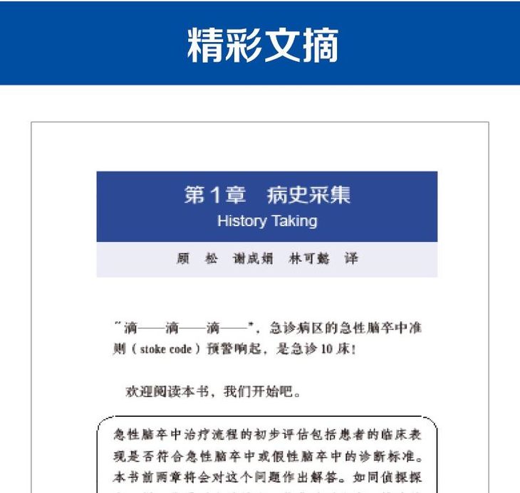 目前脑卒中的相关文献有两个特点:文献多、更新快。如何帮助临床医生从大量的脑卒中文献中快速而且准确地获得相关指引,这是本书编写的初衷。本书共12 章,分别从脑卒中的病史采集、脑卒中综合征、脑卒中的影像学开始,逐渐阐述到脑卒中的药物治疗、介入取栓及围术期管理。笔者团队力图向我们临床医生快速准确地展示脑卒中的整体治疗途径,为临床争分夺秒的治疗提供帮助。