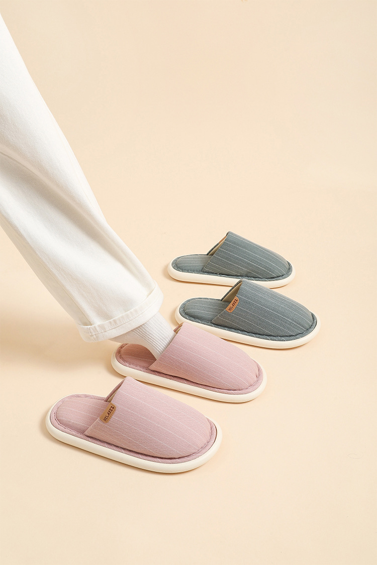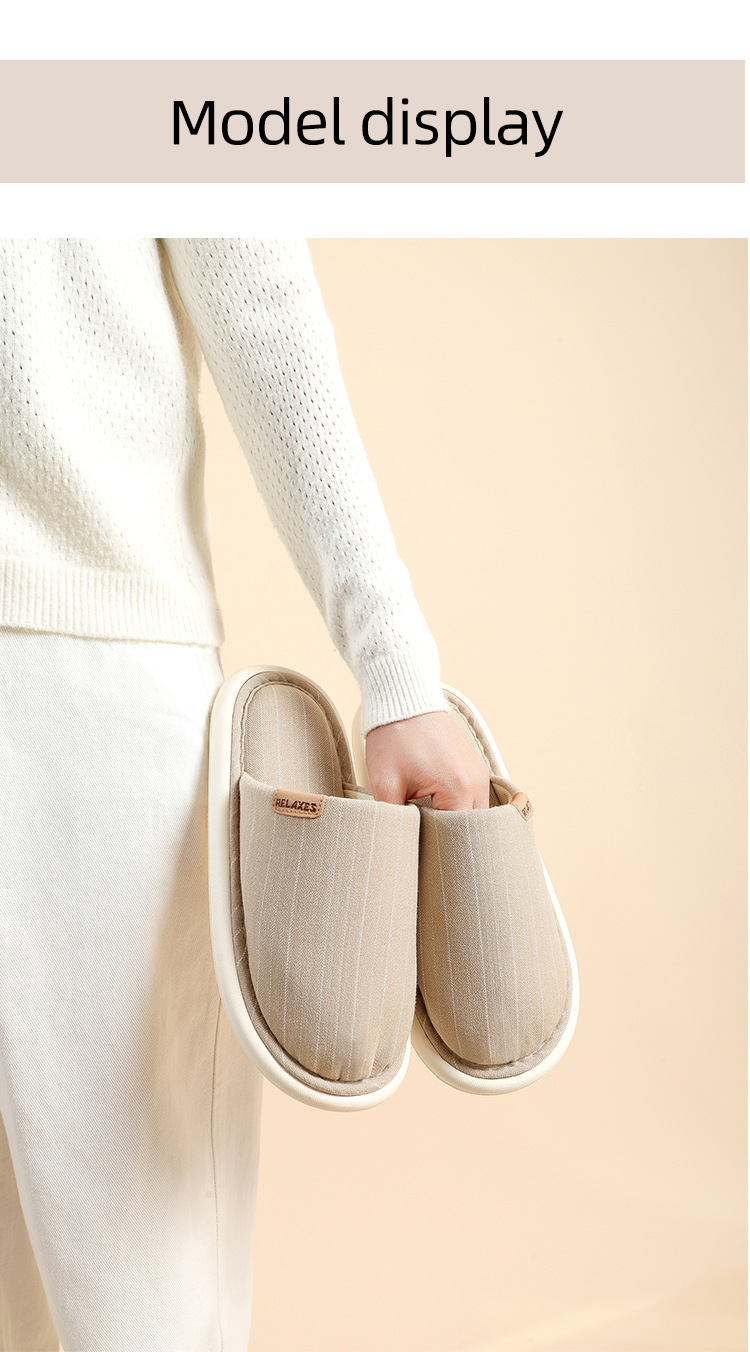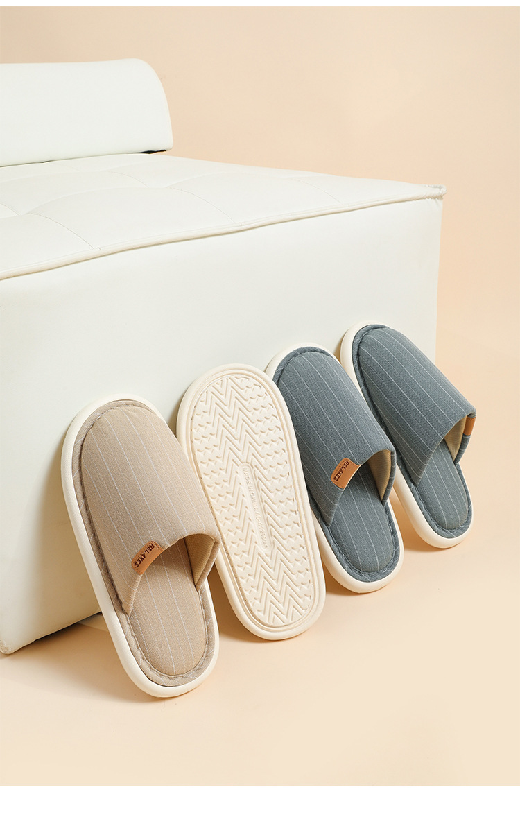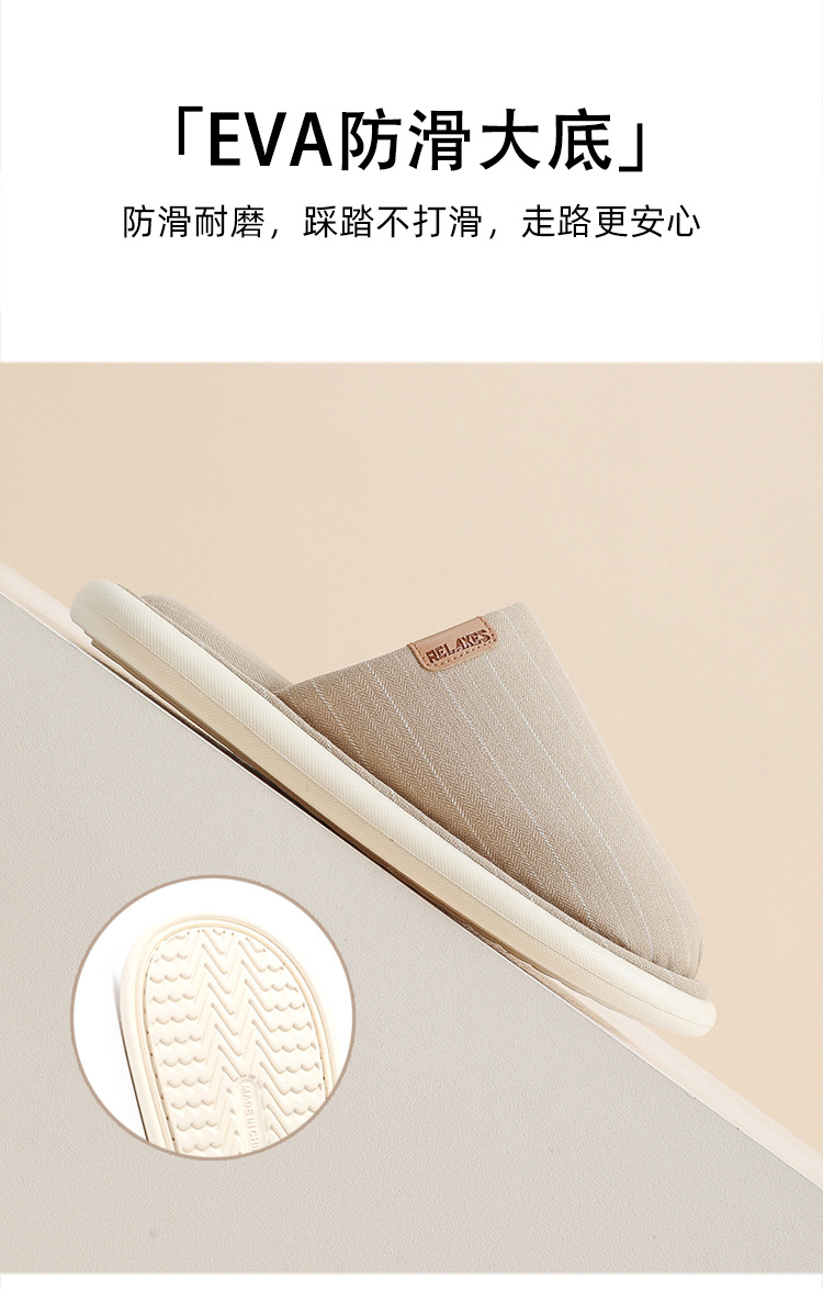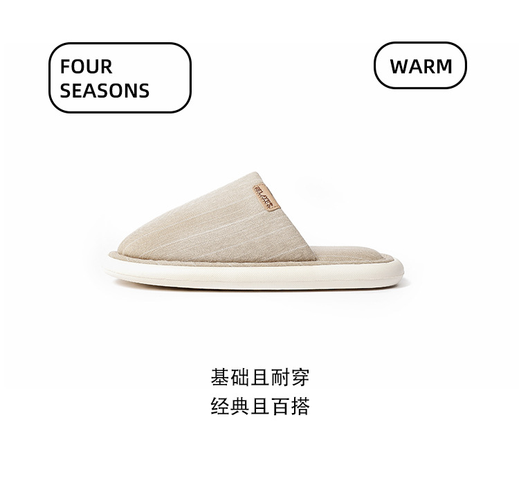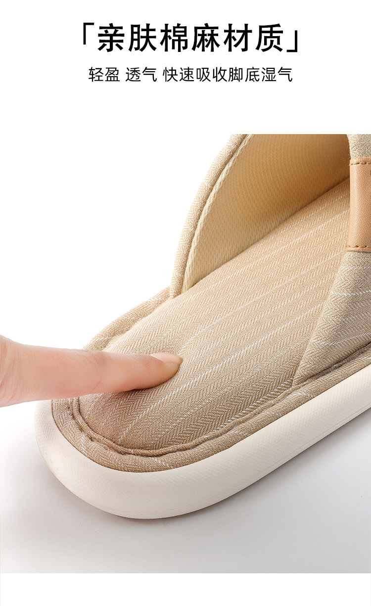 透气棉麻~春秋简约棉麻透气不臭脚居家拖鞋男女室内软底防滑情侣四季家居鞋