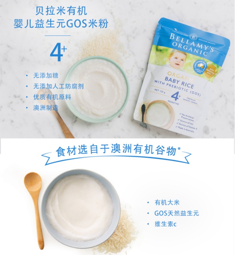 【保税仓】澳大利亚贝拉米Bellamy's宝宝有机大米米粉4+段125g