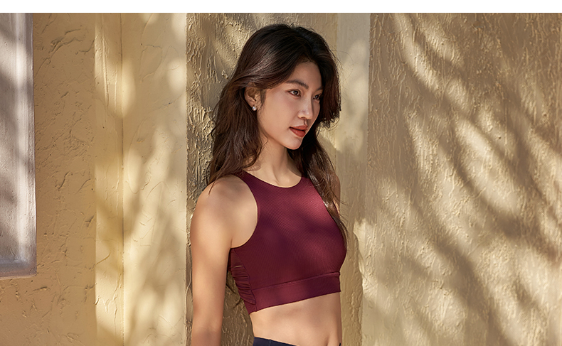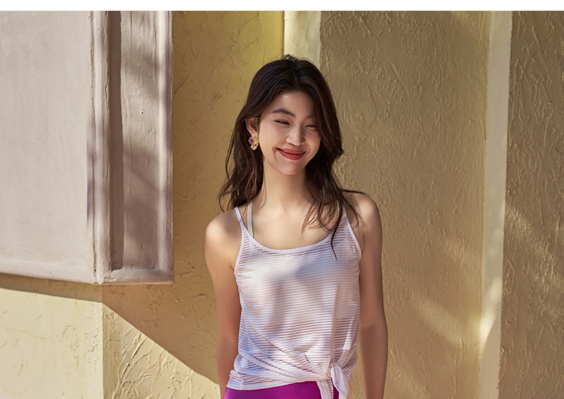 【路路精选】条纹瑜伽背心防震高强度一体杯文胸女美背瑜伽服上衣健身运动内衣