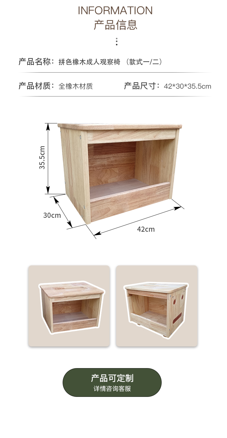 拼色橡木成人观察椅
