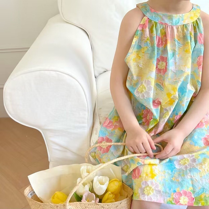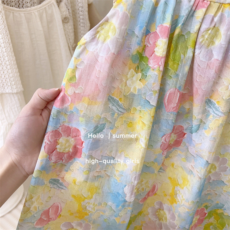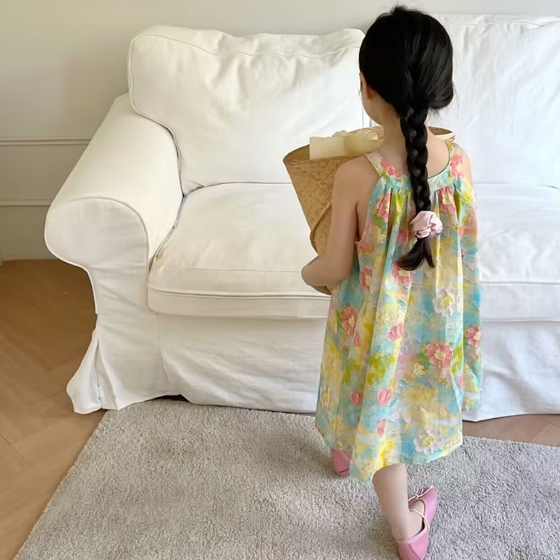 【流行和时尚的结合!韩国童装女童洋气花朵吊带连衣裙】舒适柔软亲肤透气,凉爽不闷热,无束缚,显得更加乖巧可爱萌趣,韩版童装女童连衣裙夏季儿童长裙女宝宝公主裙