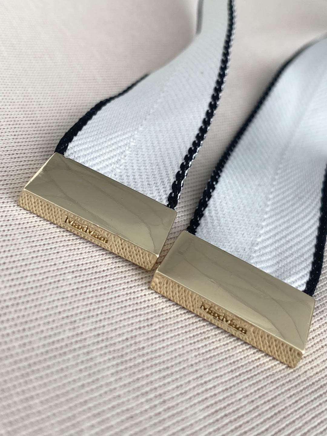 方便调节腰围,更起到装饰作用,分量感吊钟,底部刻有MAX logo、极具辨识度