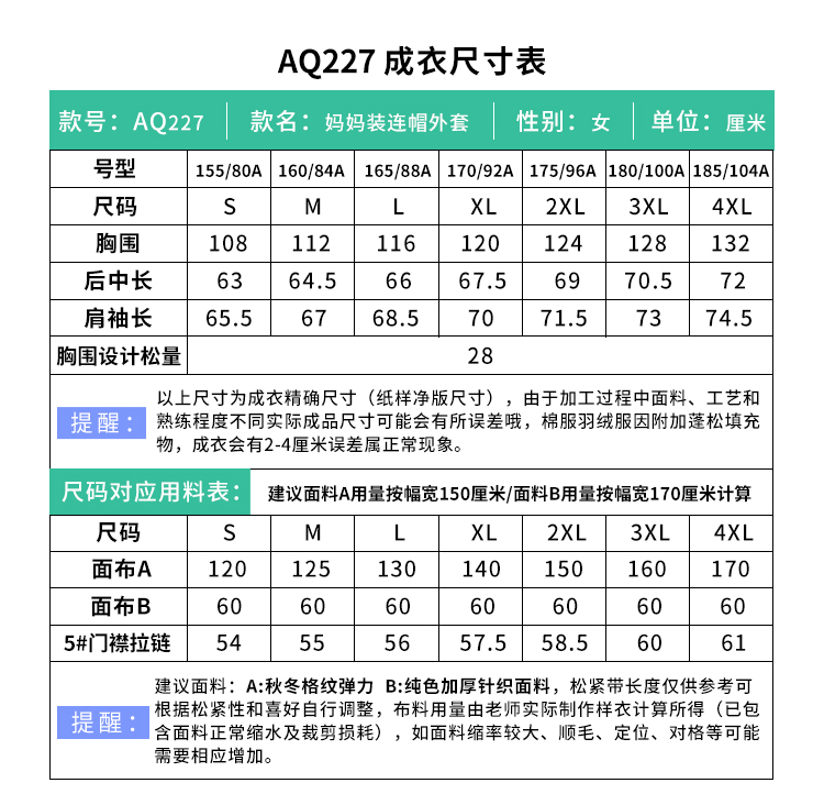 裁缝学苑AQ227中年妈妈装连帽开衫上衣短款外套纸样女装服装打板