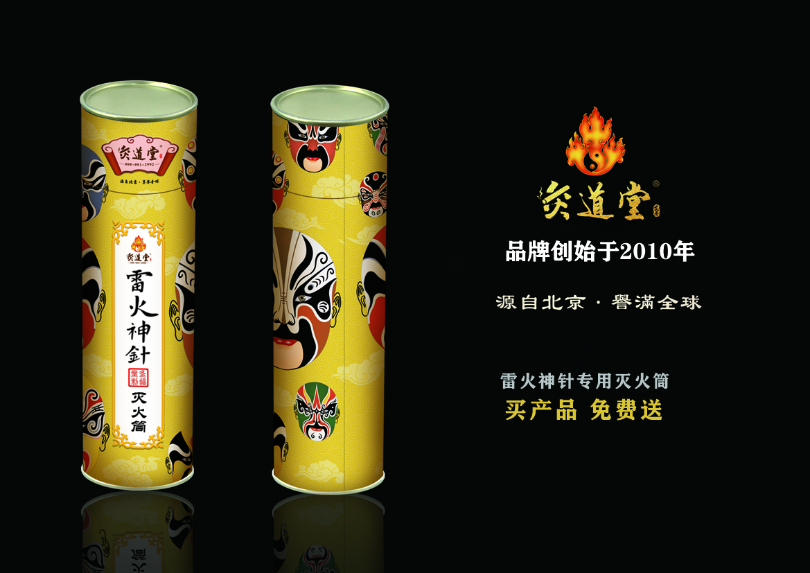 灸道堂畅销经典:雷火神针套盒,5只装:4.5×20厘米,赠专用灭火筒